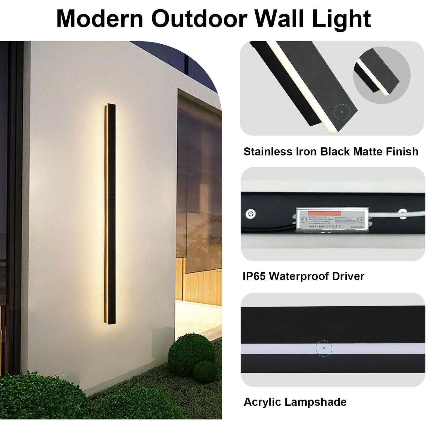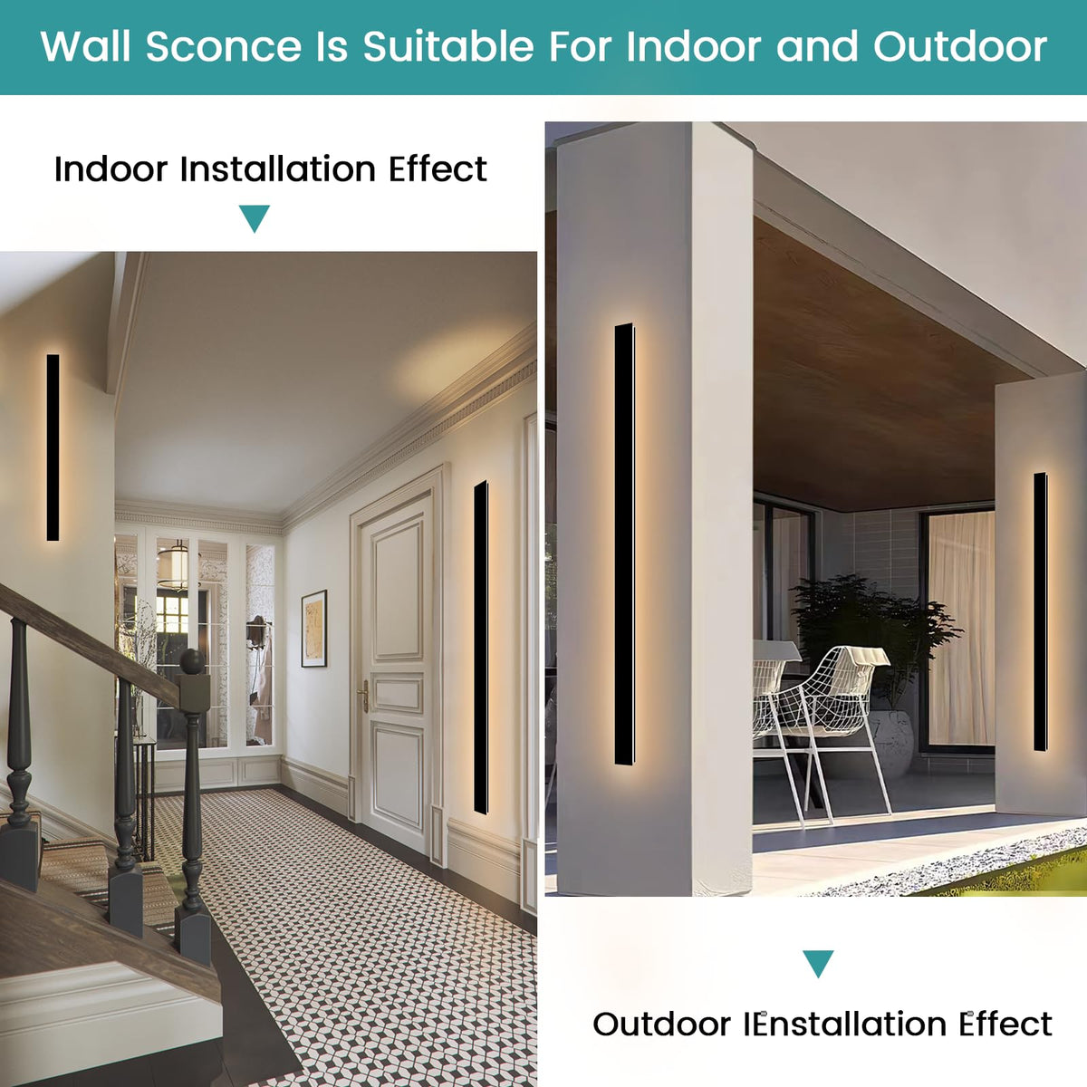 2 Pack 24Inch Outdoor Wall Light For House, Modern Black Led Wall Sconce, Linear Porch & Patio Wall Lights, Exterior Wall Sconce