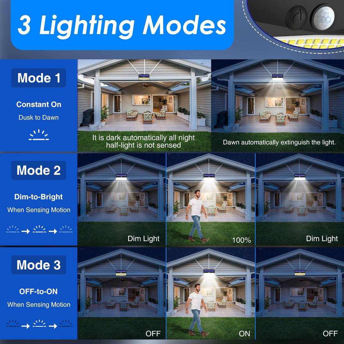 2 Pack 368 Led Solar Lights Outdoor Motion Sensor, Solar Fence Lights With 3 Lighting Modes, Solar Powered Security Lights Water
