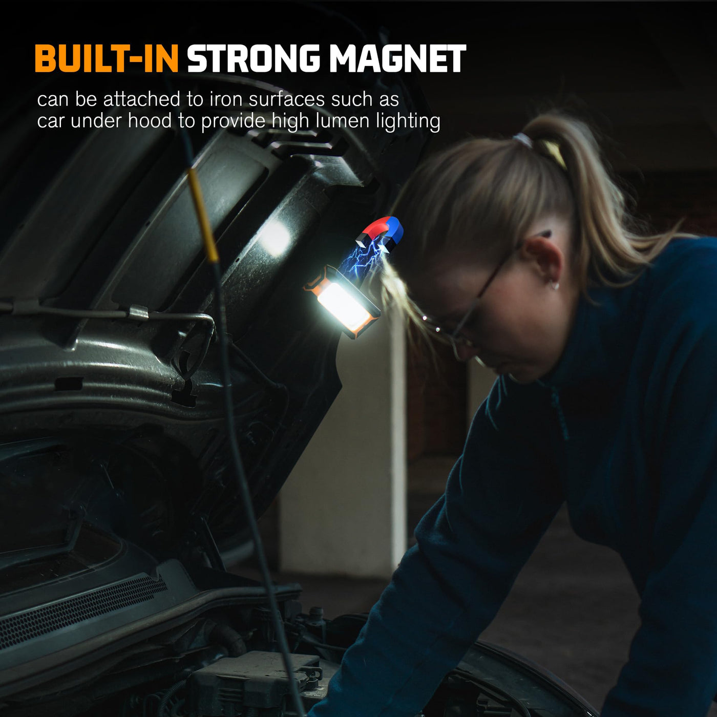 This is what makes your choice of a Favorlite Light a wise decision: [Ultra Bright led Light] a 40W,1500 Lumens COB LED Light built-in two rechargeable battery and with a USB port to charge the mobile or other devices.---------- [3 Modes Function] Three different modes help you in many situations, high brightness, medium brightness, and low Brightness. Press the switch on the button to turn on the light to cycle through among 3 modes.--------- [Hook Design And Magnet Adsorption] Built-in strong magnet, which can be attached to metal surfaces such as car bodies to provide bright lighting. The hook design allows the lamp to be hung on objects such as tents that cannot be absorbed. Adapt to various difficult environments and make work emergencies more convenient.------- [Portability Make Wild Applications]rechargeable make our lamp great for home, outdoor, Car repair, Camping, working on electronics, emergency roadside repairs, or multipurpose work, etc.