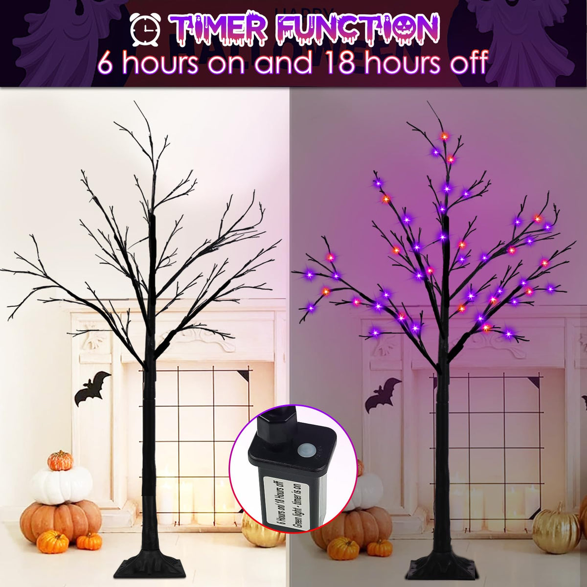 2-Pack 4FT Lighted Black Halloween Tree with 96 LED Orange & Purple Lights (Higher Size & Floor Standing), Halloween Decorations