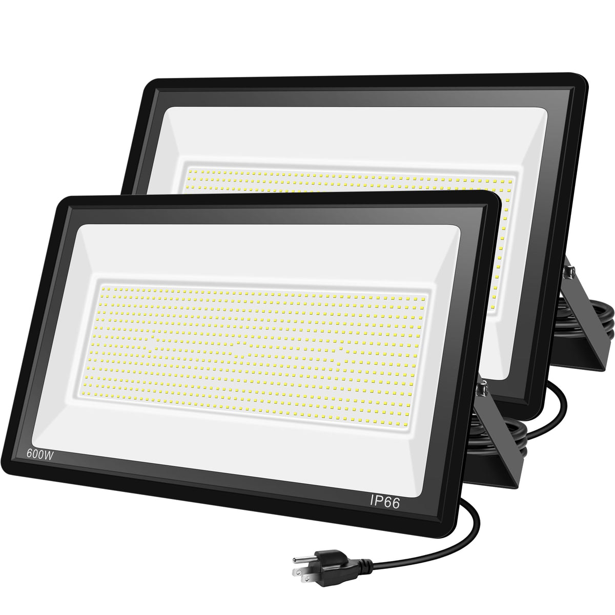 2 Pack 600W Led Flood Lights Outdoor (3000W Equivalent) 66000Lm 6000K Daylight White Super Bright Security Arena Light With Plug Ip66 Waterproof Commercial Lighting For Yard Courts Stadium