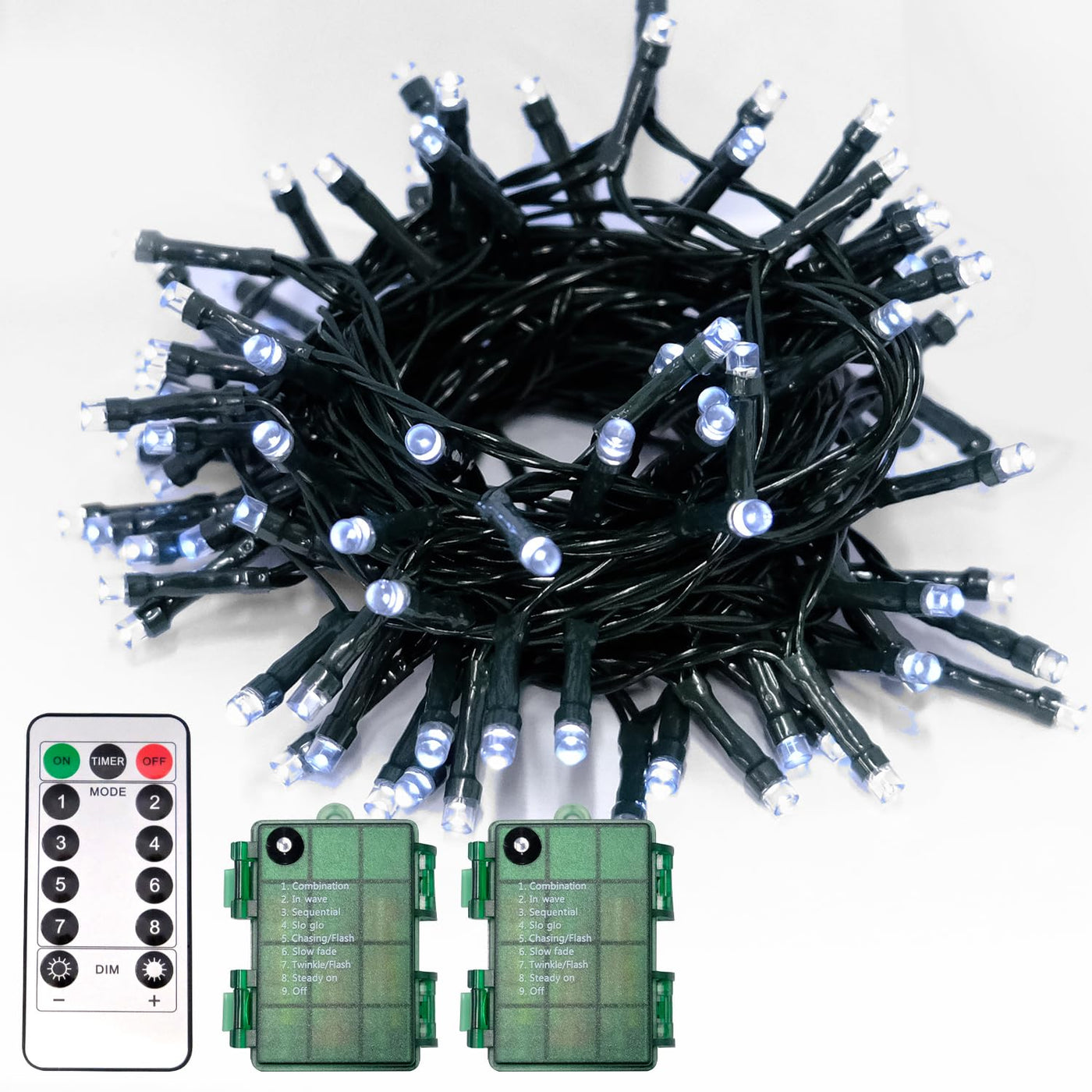 2 Pack Battery Operated String Lights, Each 16.5 Ft 50 Led String Lights Dark Green Wire With Remote Timer 8 Modes Fairy Lights For Bedroom Garden Party Garlands Christmas Tree Decor(Cool White)