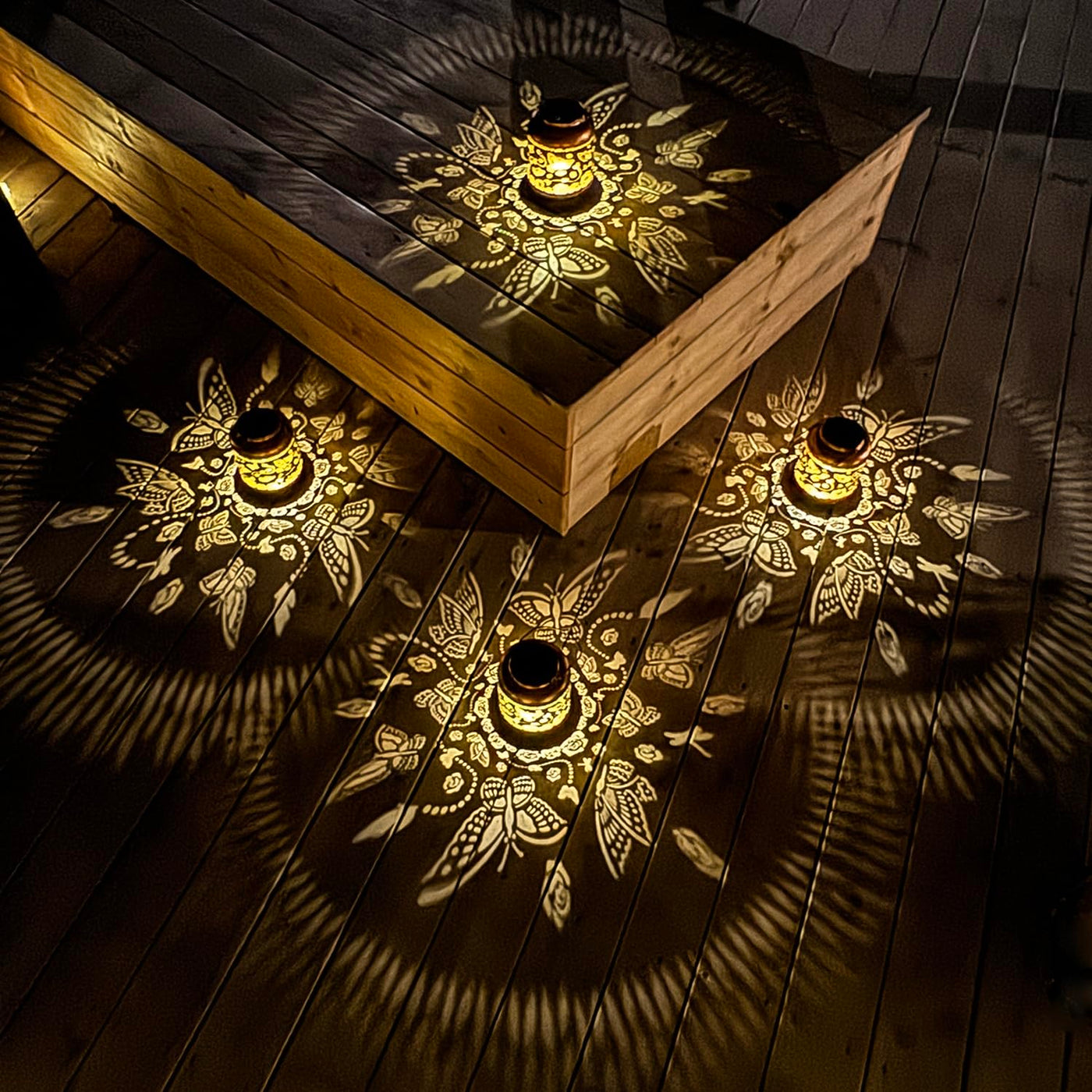 Q: What materials are the Butterfly Solar Lanterns made of?A: The Butterfly Solar Lanterns are crafted from high-quality durable metal with a beautiful antique bronze finish. This construction ensures longevity and resistance to various weather conditions, thanks to its IP65 waterproof rating.
