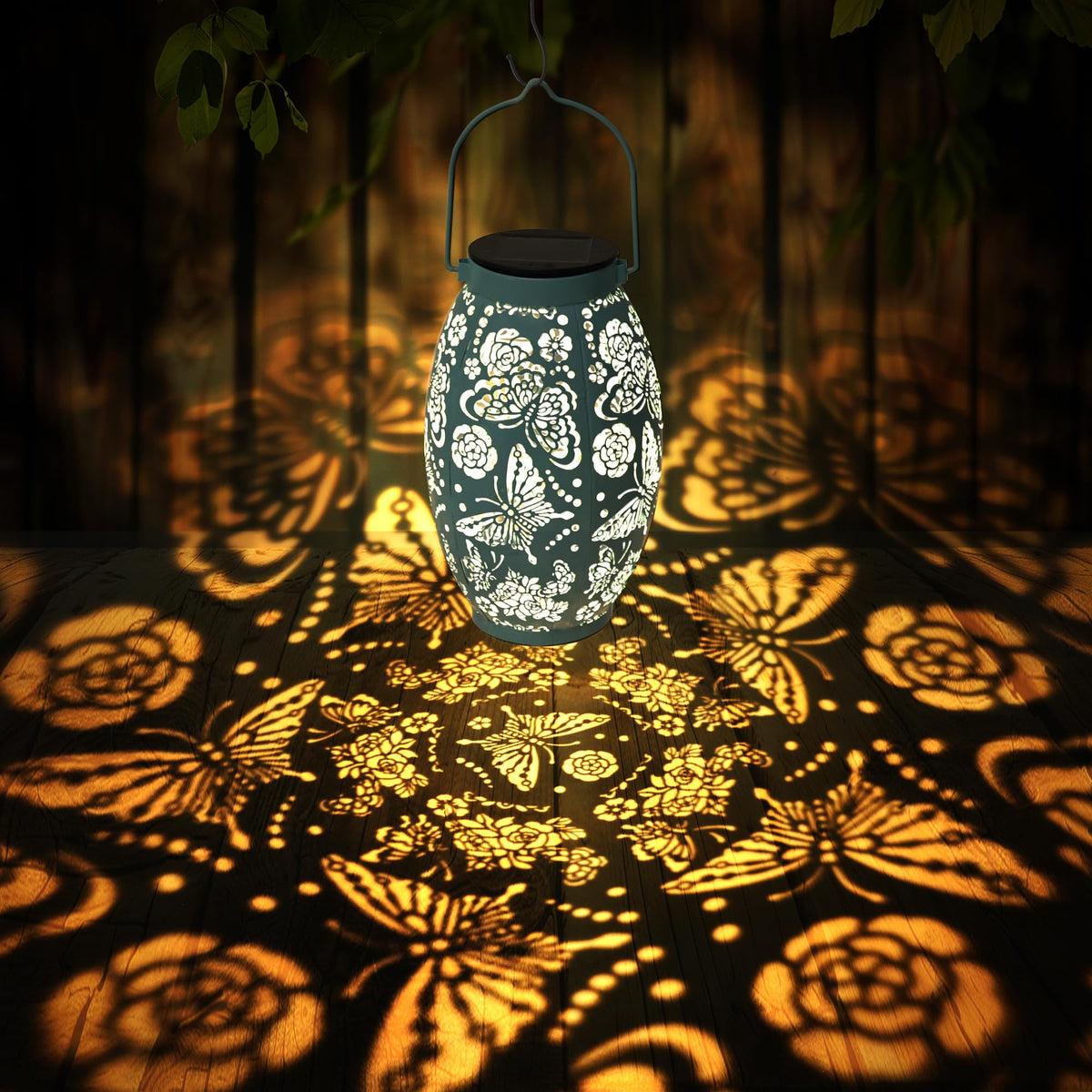 Q: How do the butterfly solar lanterns work?A: The butterfly solar lanterns operate using solar energy. During the day, the solar panels charge the lanterns, and at dusk, an automatic sensor activates the lights, providing a warm glow throughout the night without the need for batteries or electric cords.