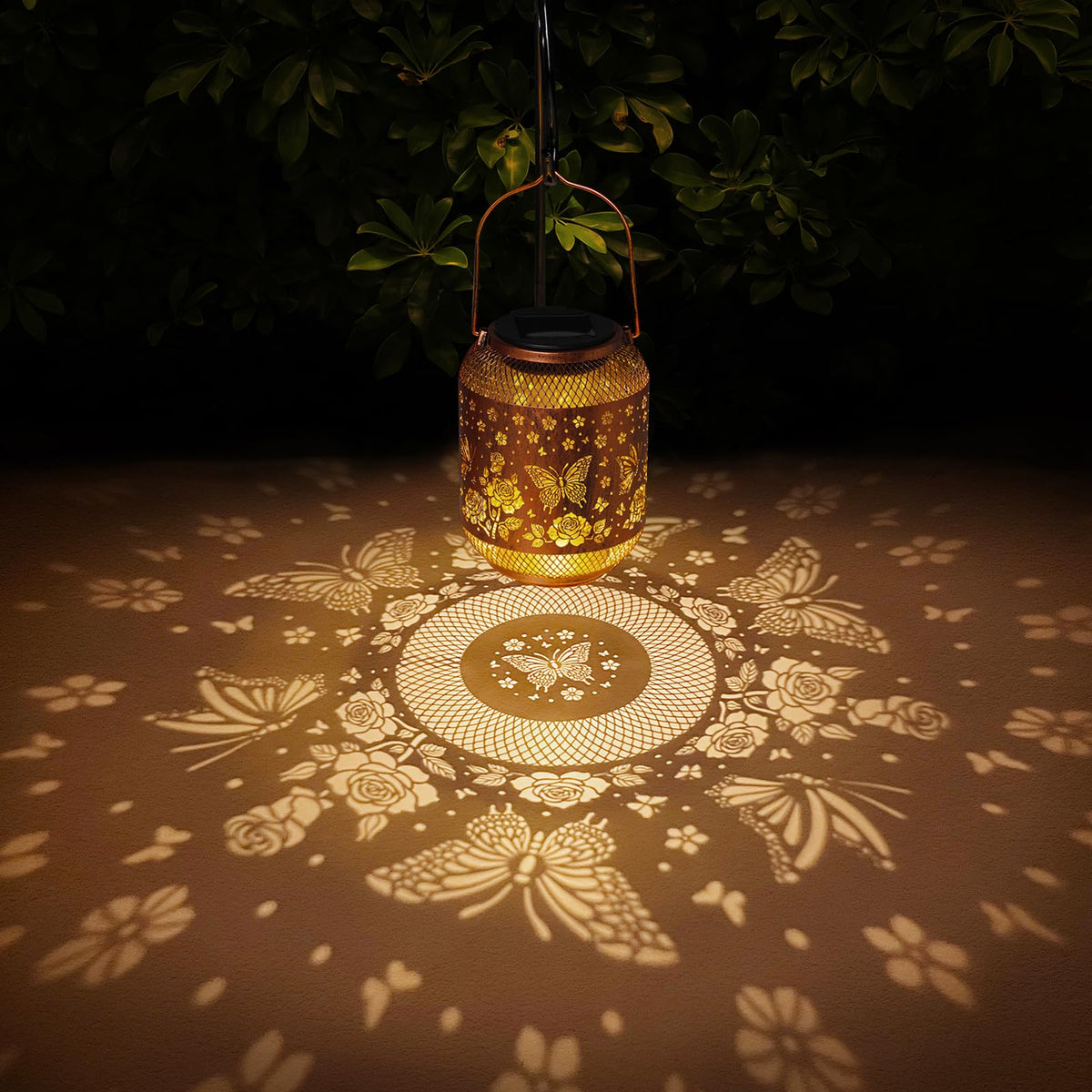 2 Pack Butterfly Solar Lanterns Outdoor Waterproof Rose Garden Decor Gifts For Women Mom Grandma Hanging Solar Lights Metal Lant