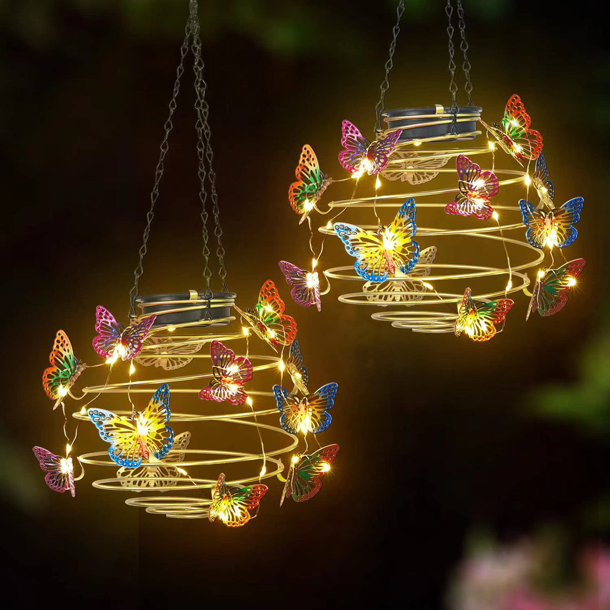2 Pack Butterfly Solar Lights Outdoor Hanging Lantern with Handle, Solar Powered Butterflies Garden Decor for Outside Patio Yard