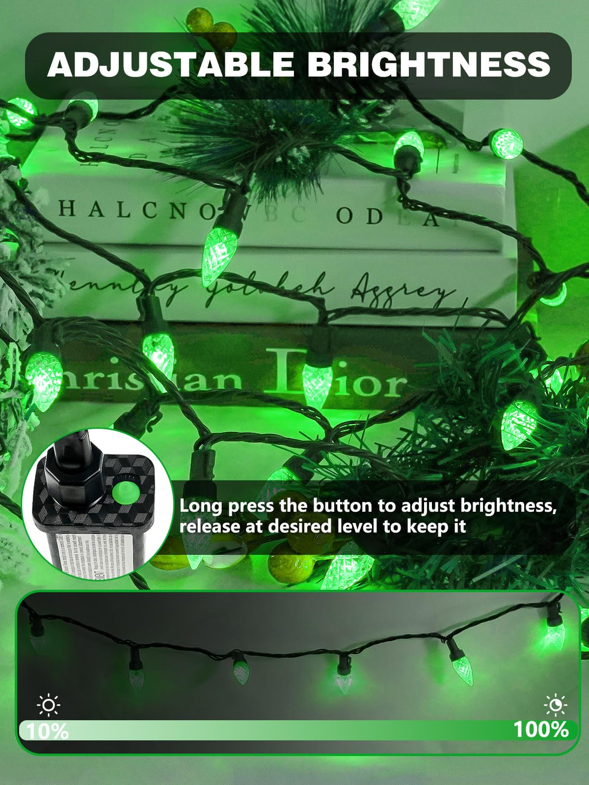 2 Pack C6 Christmas Lights Outdoor Indoor Total 200 Led 66 Ft Connectable Christmas String Lights With Timer & 13 Modes Waterproof Twinkle Light For Xmas Tree Yards Party Wedding Decorations (Green)