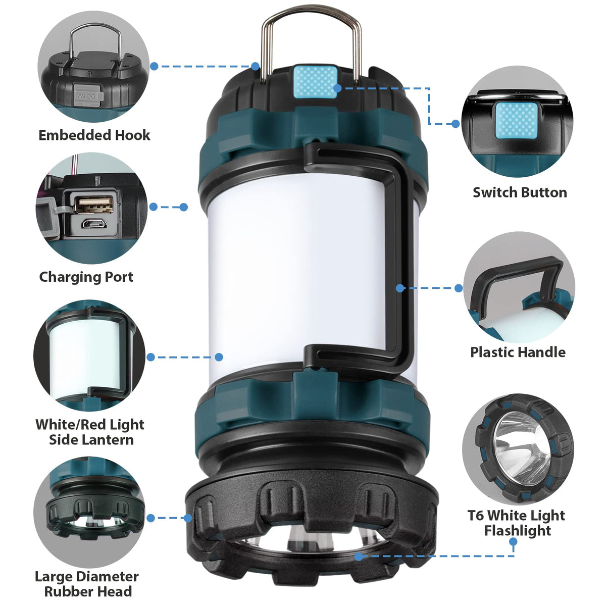 The BOBKID 2-Pack Rechargeable Camping Lantern is the perfect accompaniment for any outdoor gathering. The lantern has been developed with ease of use in mind and includes a handy hanging hook and carry handle. The lantern has also been designed with rechargeable batteries, which can be recharged via 5V with the included USB input cable, you wont need to go replacing the battery frequently. It can also be used as a 4000mAh power bank to charge your phone or other USB devices in an emergency. There are six light settings to choose from including high/low mode of flashlight & lantern and stable/strobe mode of red light. Perfect for camping, hiking, backpacking, and just keeping around the house for daily use. Specification Materials: ABS Wattage: 5W Output: 5V/1A Luminous Flux: 1000Lumen Battery Power: 4000mAh Light Source: 1*T6 white led+40* 2835 White led+20* Red led Package Includes 2 x Camping Lantern 2 x USB Charging Cable 2 x Two Way Hook 1 X User Manual Note 1. Read this manual before operation and keep it for future reference. 2. Keep children away from this product. 3. Do NOT stare at the light of this product. 4. Keep away from fire and extreme heat, avoid leaving this product in wet conditions. 5. This product is water-resistant under daily use and can be used in the rain. However, Do NOT intentionally submerge it in water.
