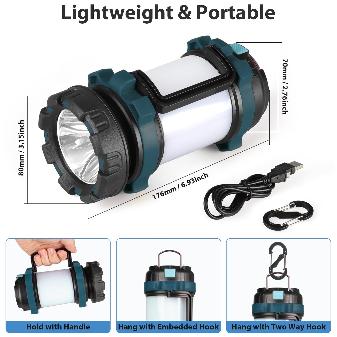 2 Pack Camping Lantern, Outdoor LED Camping Light, Rechargeable Flashlights with 1000LM, 6 Modes, 4000mAh Power Bank, IPX5 Water