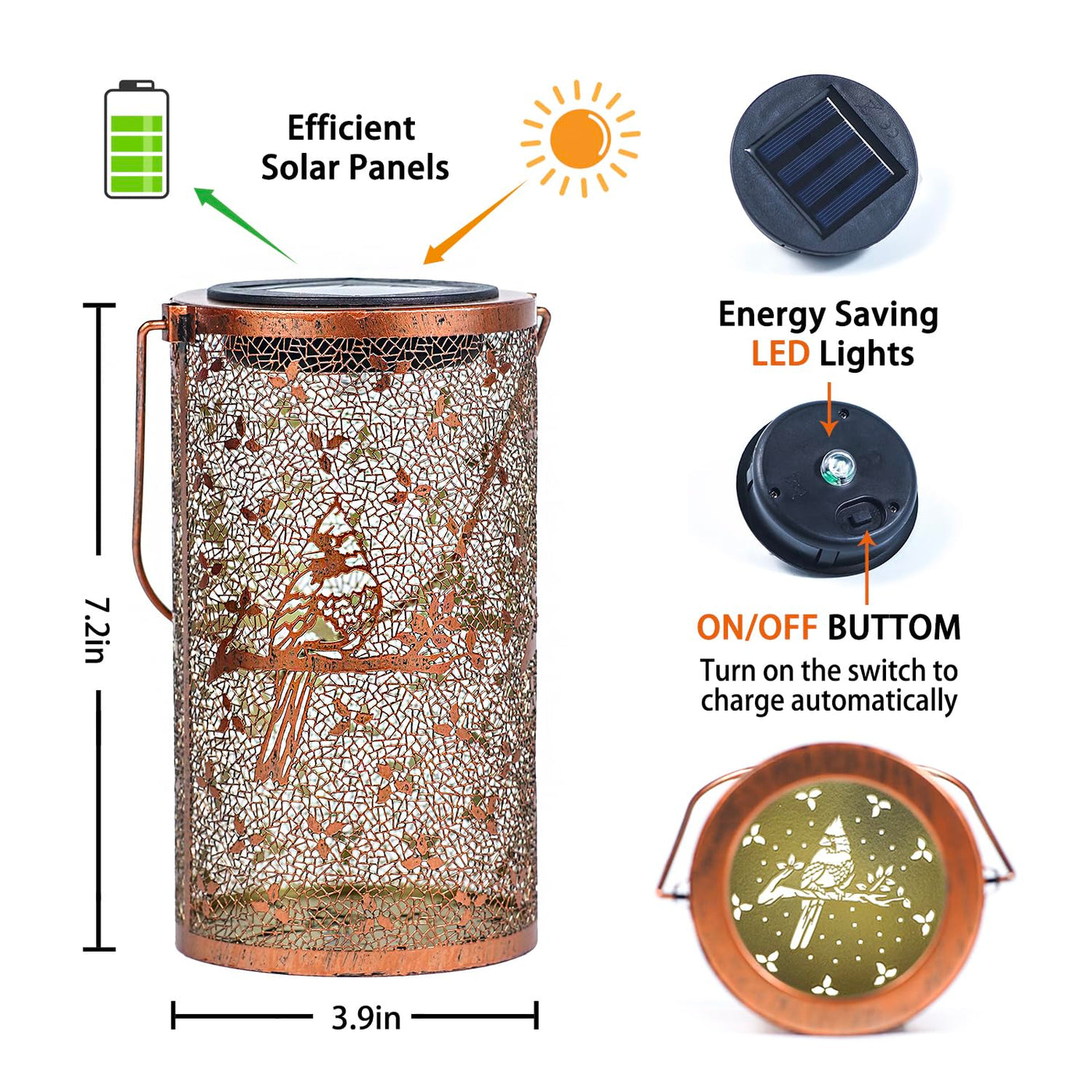 2 Pack Cardinal Outdoor Solar Hanging Lanterns Waterproof Led Solar Lights Metal Decorative Lanterns For Garden, Patio, Courtyar