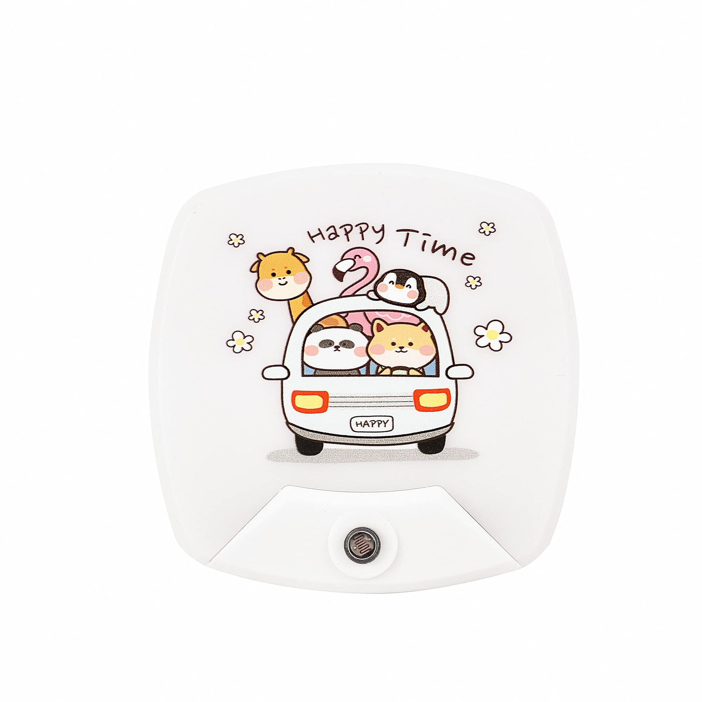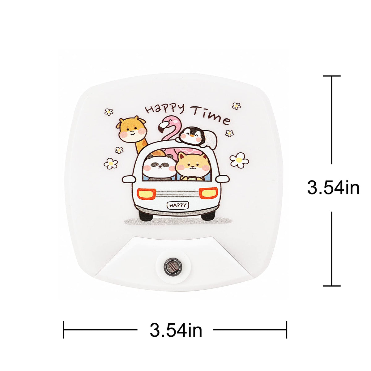 2 Pack - Cartoon Animals LED Plug-in Night Light for Kids - Wall Lamp Take Good Care Children Sleep Light Sensor Auto Controlled