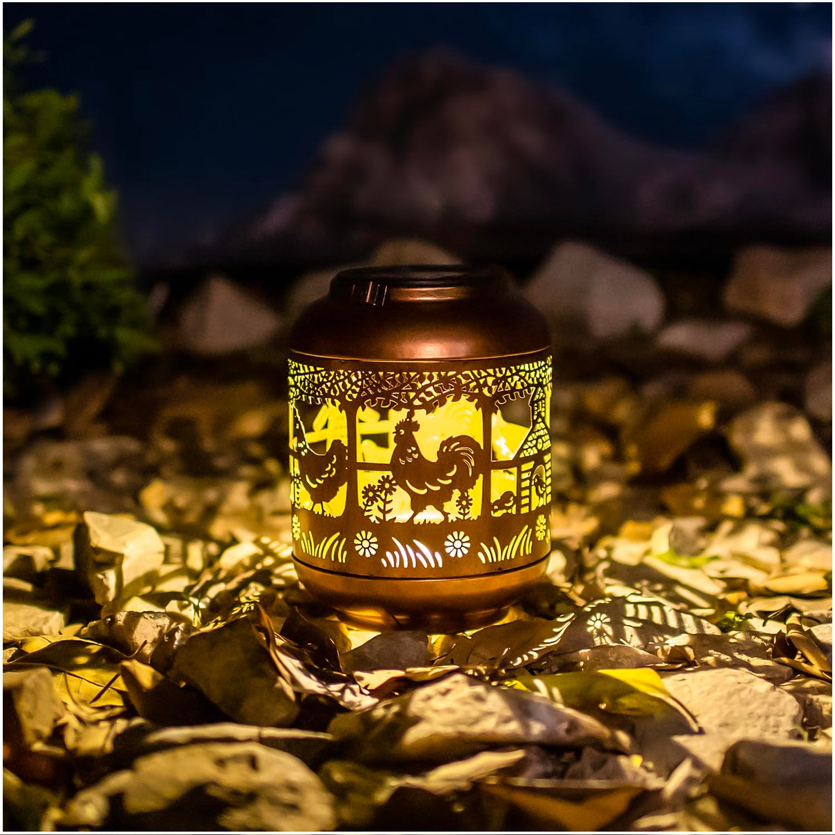2 Pack Chicken Solar Lanterns Outdoor Waterproof,Hanging Solar Lights Chicken Gifts For Women Men Metal Led Decorative Light For