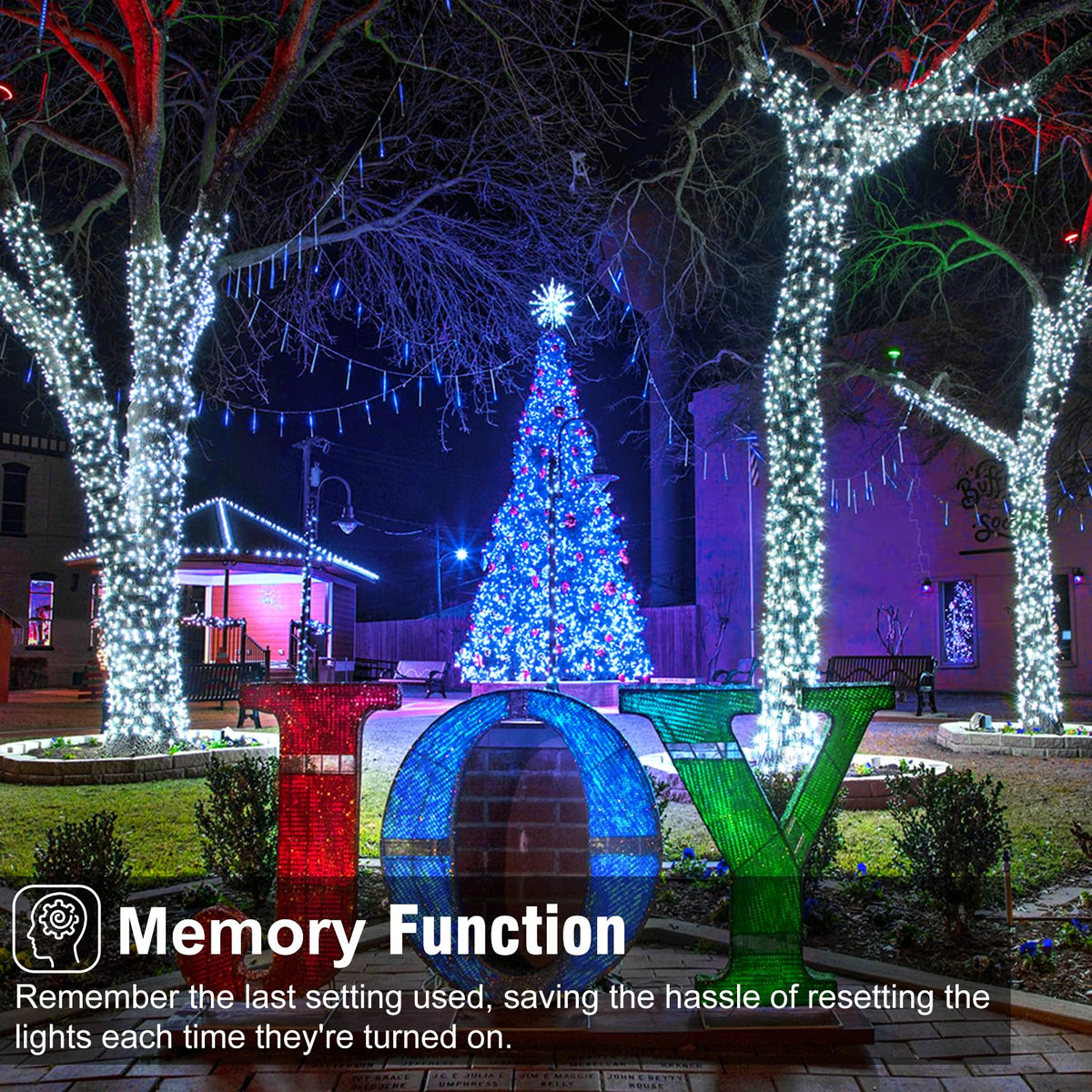Q: Is there a timer function for these Christmas lights?A: Yes, the Christmas lights come with a timer function that allows you to set them to stay on for 6 hours and then turn off for 18 hours, along with a memory function to remember your last settings.