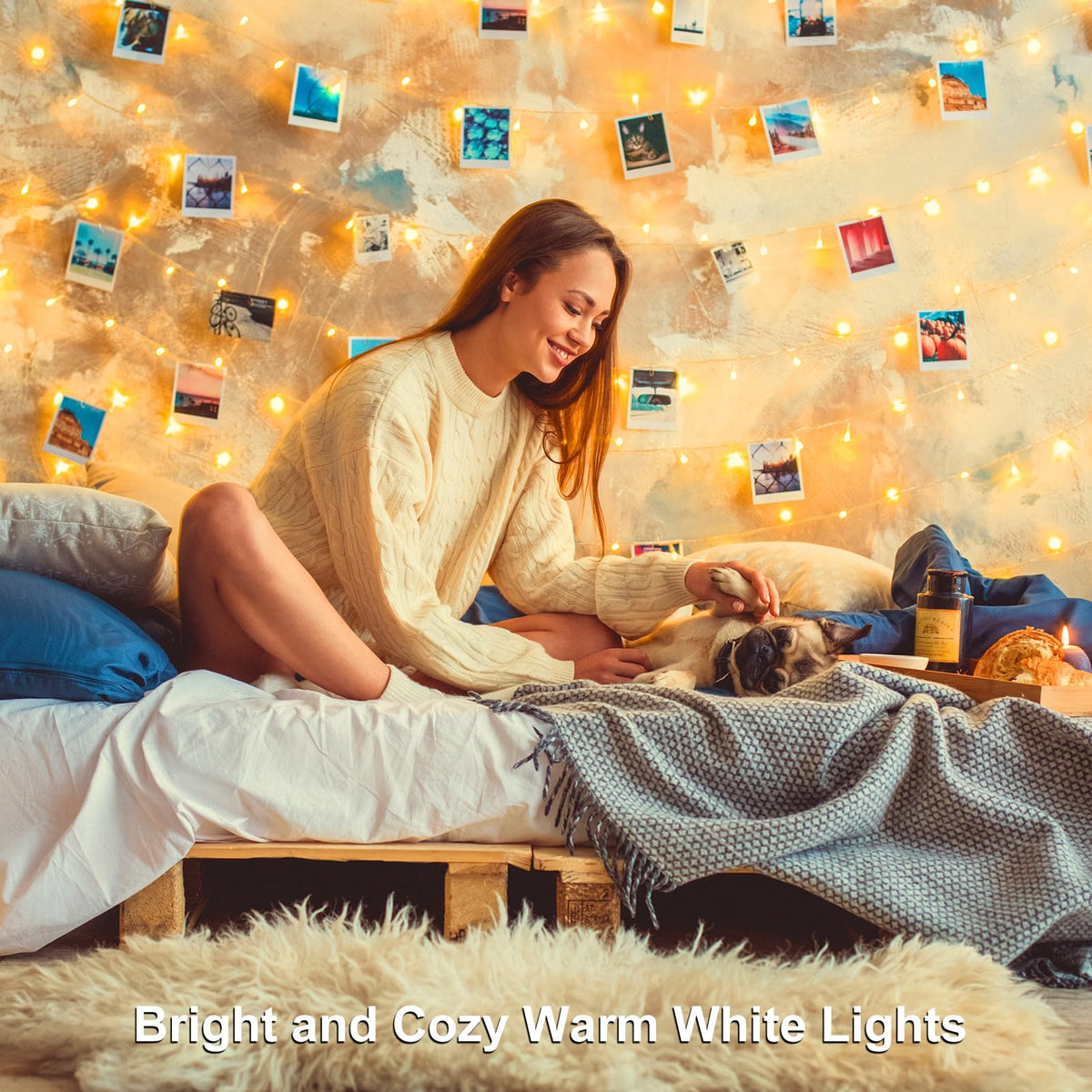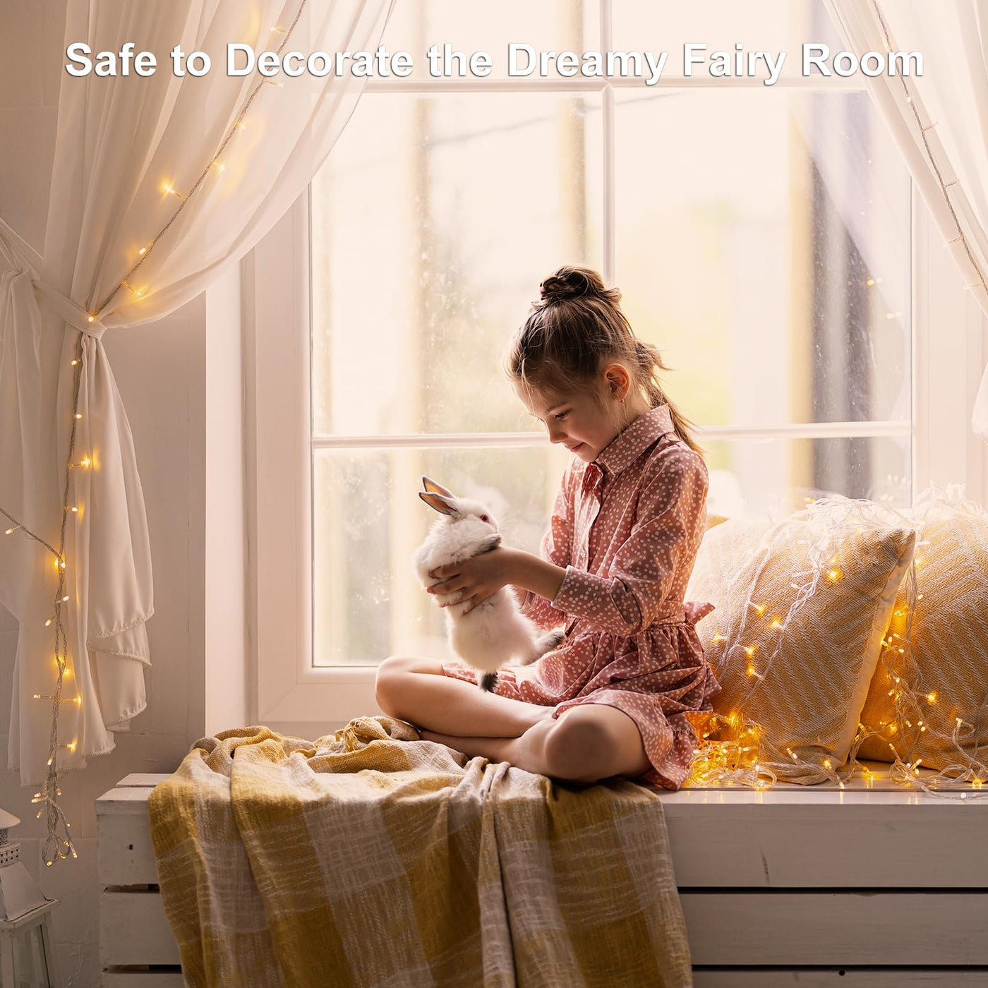 Q: How long are the fairy string lights and how many LEDs do they have?A: Each string light is 33 feet long and contains 100 LED lights, providing ample length for decorating various spaces.