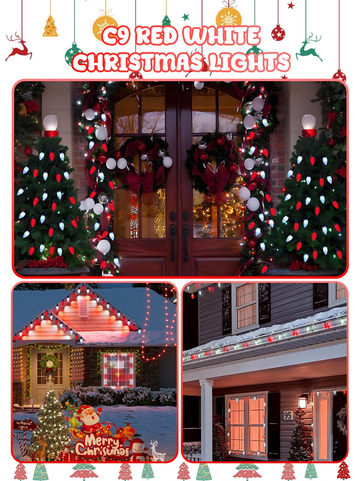 2-Pack C9 Christmas String Lights Plug In 66 Ft 100 Led Christmas Lights Connectable With 8 Modes & Timer Waterproof Fairy Twinkle Light Indoor Outdoor For Xmas Tree Yard Decorations (Red And White)