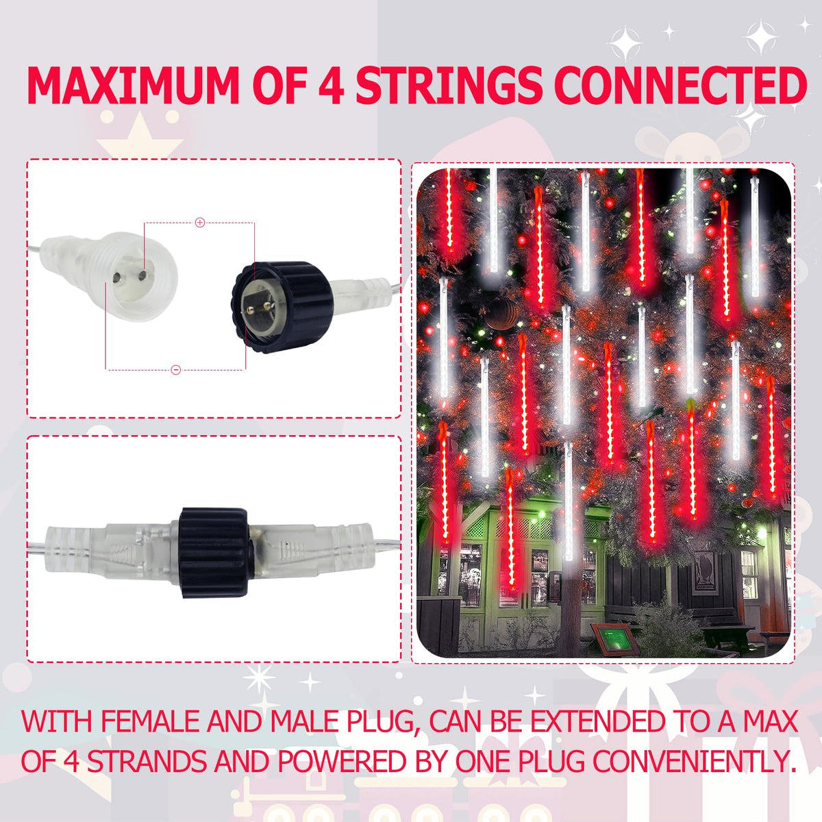2-Pack Extendable Meteor Shower Christmas Lights Outdoor 16 Tubes 384 Leds Waterproof Falling Rain String Lights Christmas String Lights Outdoor For Tree Garden Holiday Decorations (Red And White)
