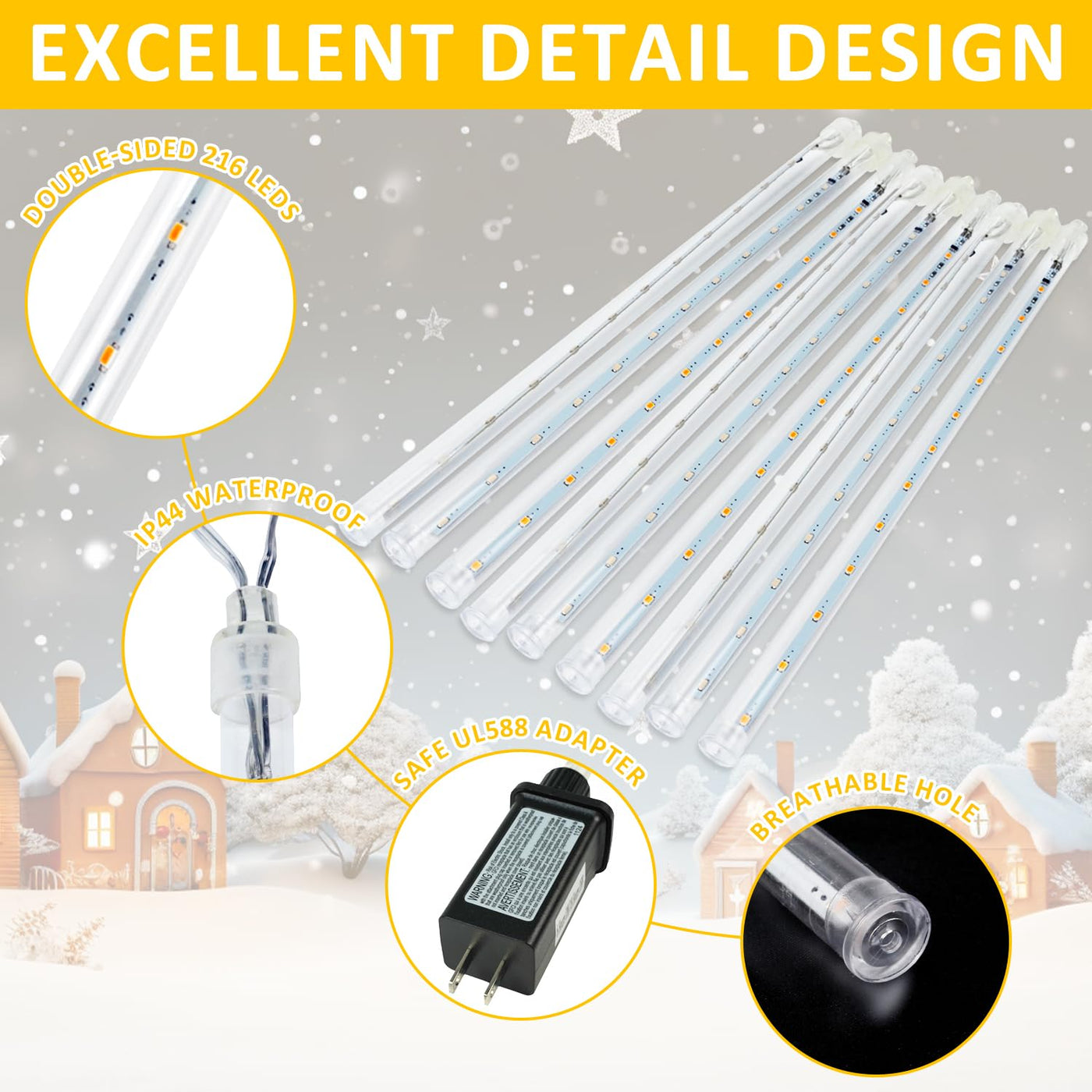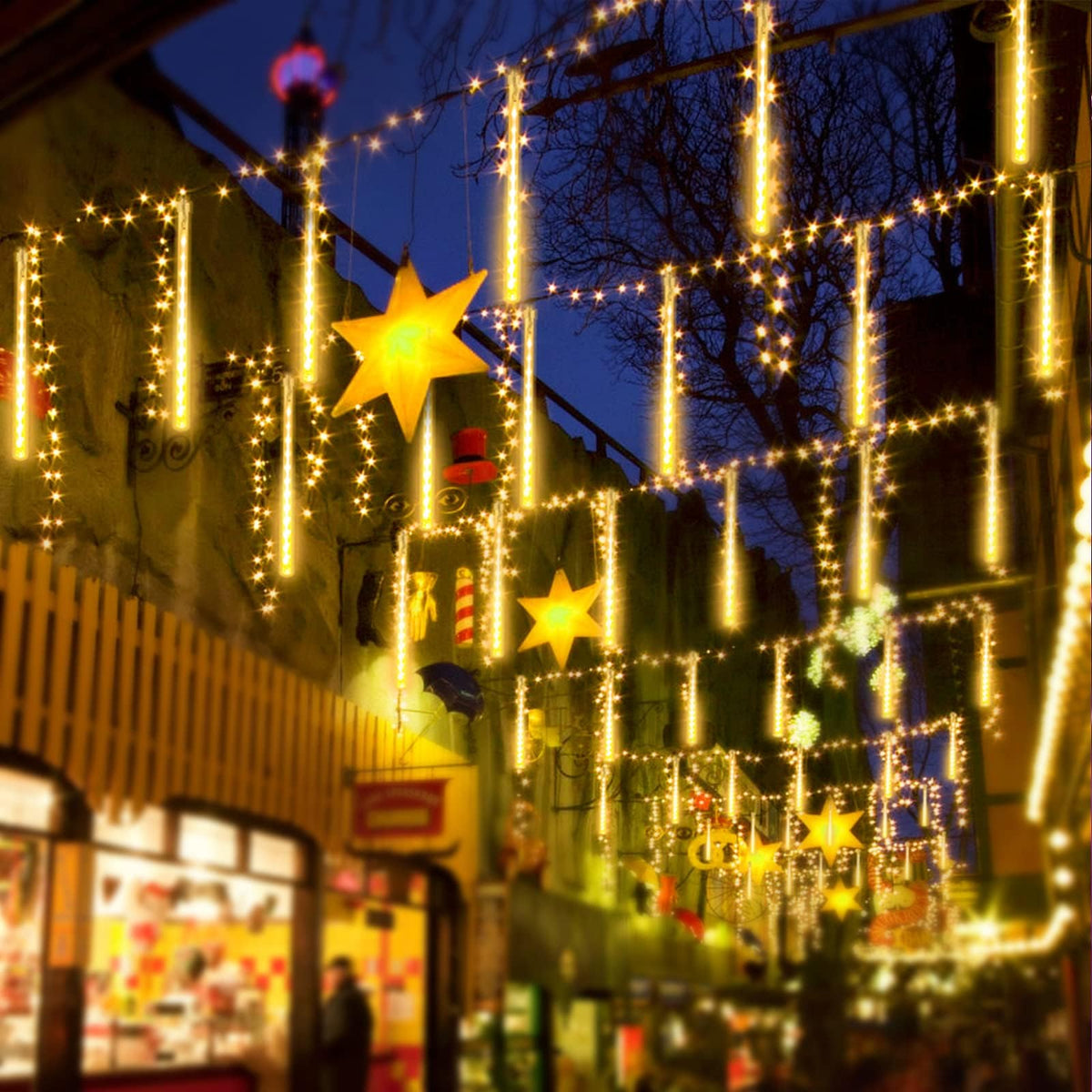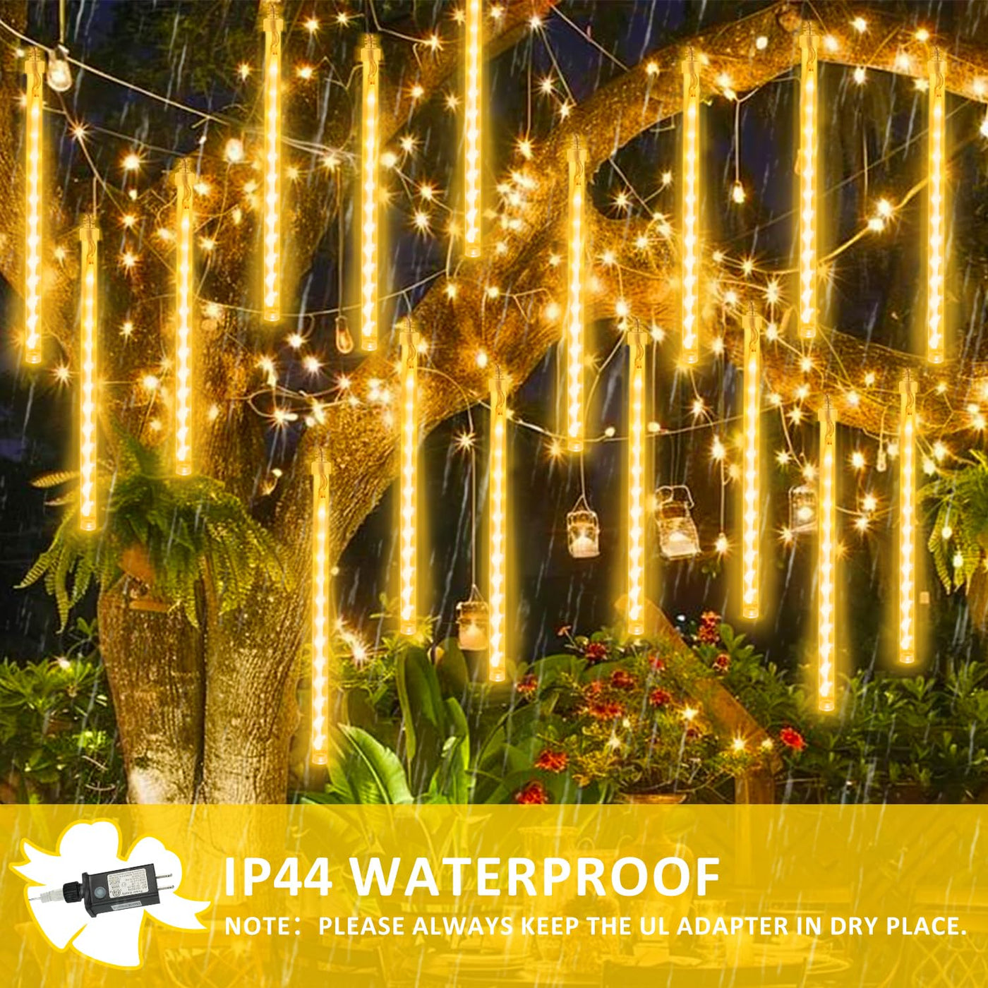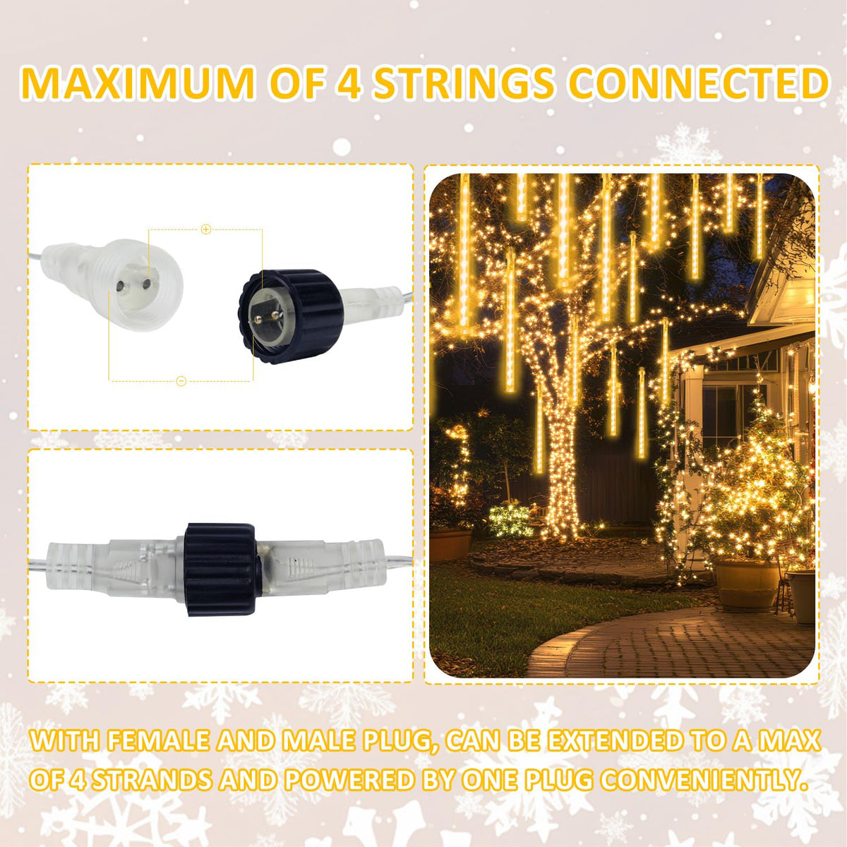 2-Pack Extendable Meteor Shower Christmas Lights Outdoor 16 Tubes 384 Leds Plug In String Light For Christmas Decorations Outdoor Tree Decor Patio Holiday (Warm White)