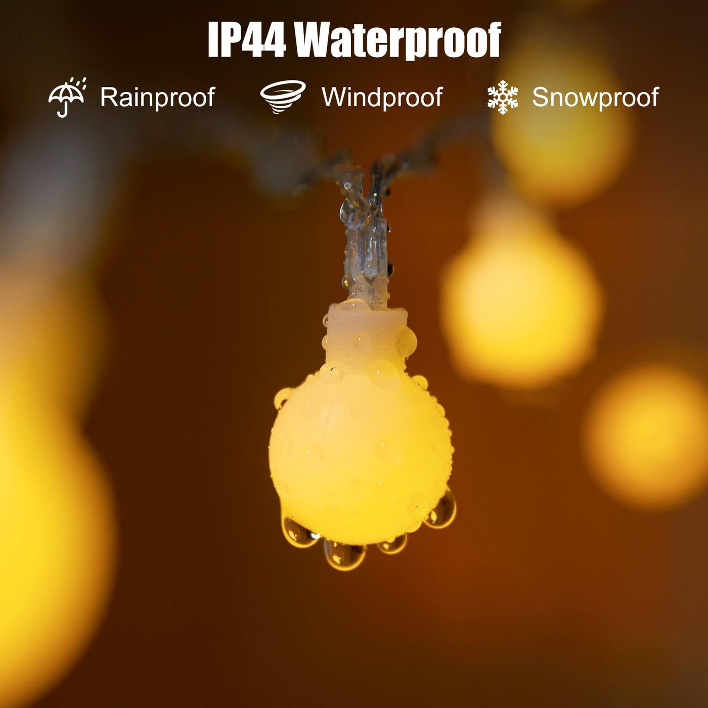 Q: Can the lights be used outdoors, and are they waterproof?A: Yes, these globe string lights are designed for both indoor and outdoor use. They are waterproof, making them suitable for decorating patios, gardens, and outdoor events, even in light rain.
