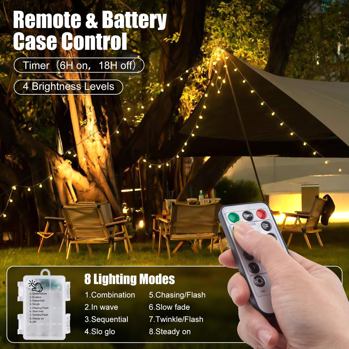 Remote Control Convenience: Effortlessly manage your lighting with a multi-functional remote. Turn the lights on and off, switch between 8 different lighting modes, and set a convenient timer for 6 hours on and 18 hours off. If you misplace the remote, the battery case also features a button for easy mode changes.