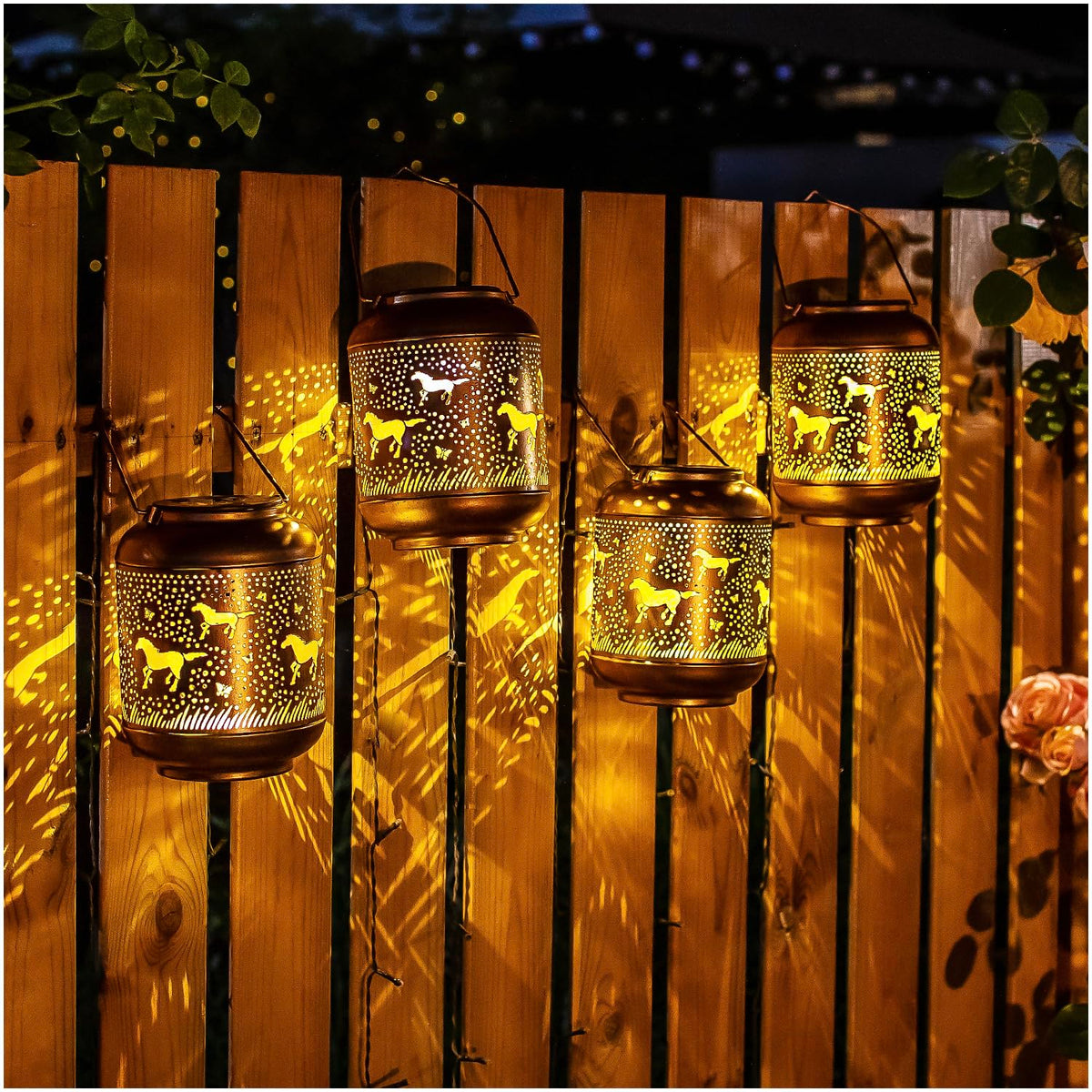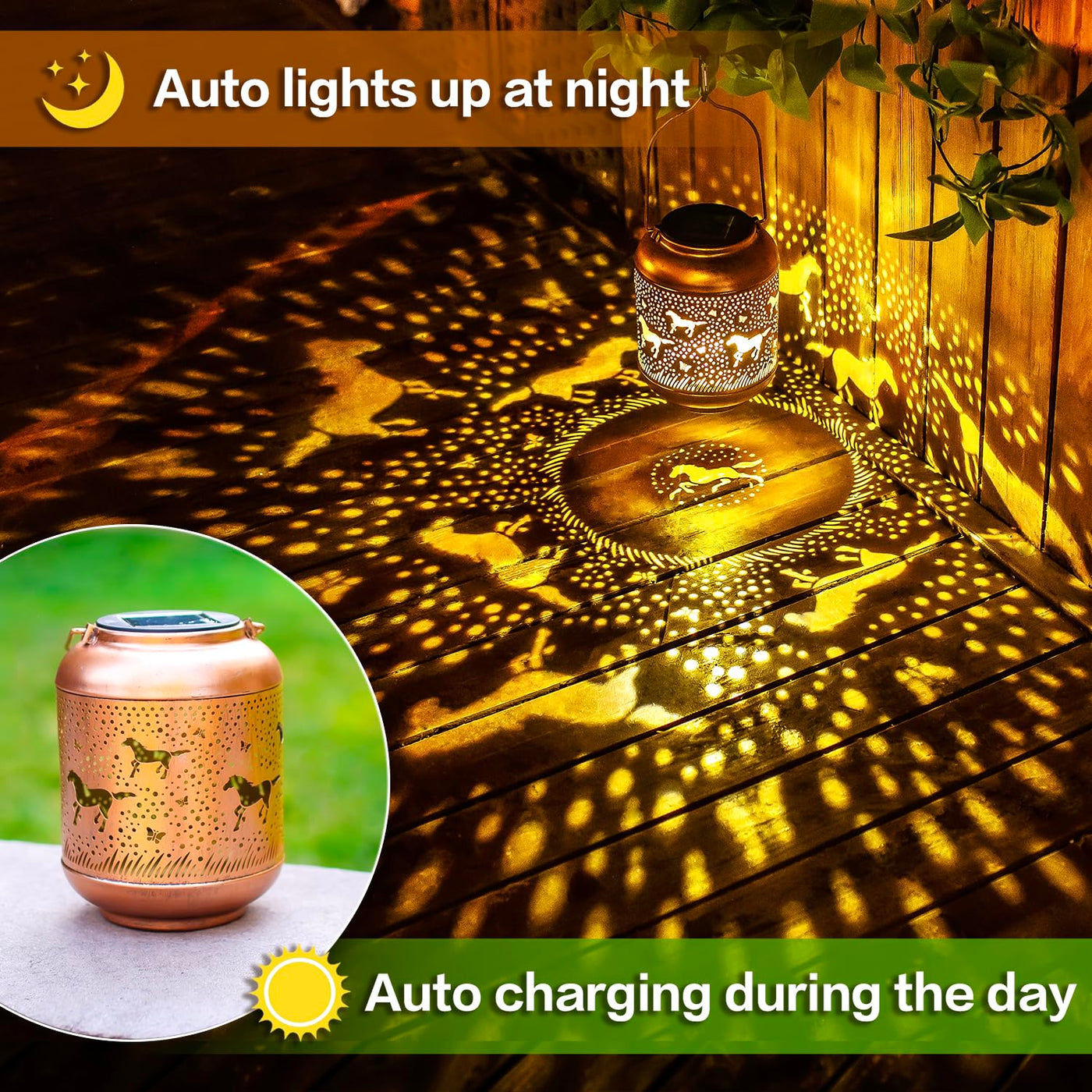 2 Pack Horse Solar Lanterns Outdoor Waterproof,Hanging Solar Lights Horse Gifts For Women Men Metal Led Decorative Light For Yar