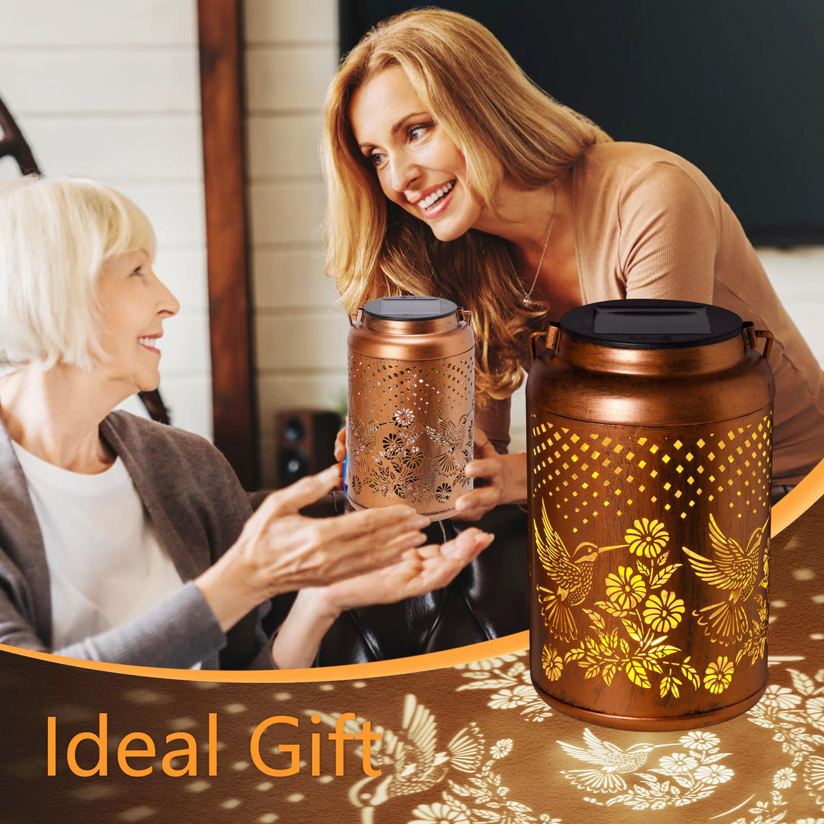 2 Pack Hummingbird Solar Lanterns Outdoor Waterproof Hanging Solar Lights, Garden Decor Gifts For Women Mom Grandma Metal Garden Decorative Lights For Yard, Backyard, Patio, Porch