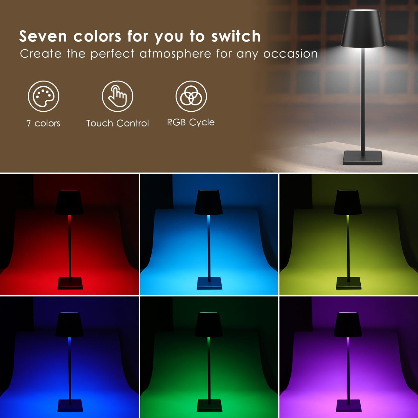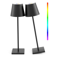 2 Pack Led Cordless Table Lamp With Rgb & Stepless Dimming Rechargeable Battery Desk Lamp 3W 5500Mah Battery Operated With Modern Portable Table Light For Indoor/Outdoor Ip54 Waterproof (Black)