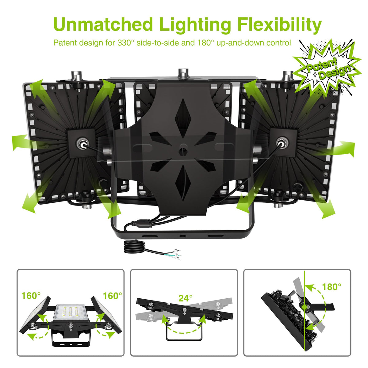 Q: Can the lighting direction be adjusted for these flood lights?A: Yes, the STASUN flood lights feature a 330-degree horizontal pivot and a U-shaped bracket that allows for 180-degree vertical adjustments, enabling you to customize the lighting direction to suit your needs.