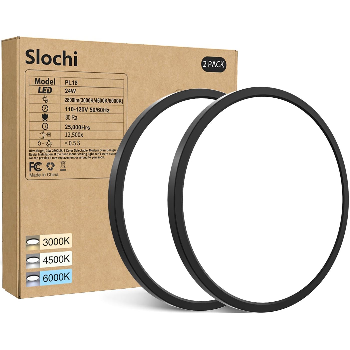2 Pack Led Flush Mount Ceiling Light Fixture Black, 9Inch 24Watt, 3000K/4500K/6000K Led Ceiling Light, Ultra Slim Flush Mount Le