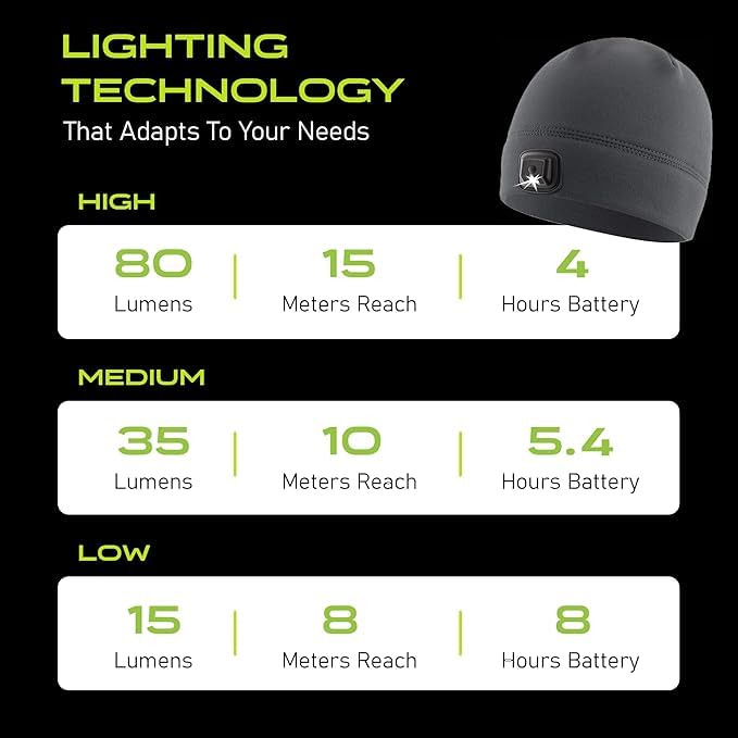 Meet the capable companion for your outdoor adventures that will allow you to thrive in low light conditions. Adaptable and adept in all indoor and outdoor situations, our LED light beanie hats help you get more done in a safer way by seeing farther and more clearly. Whether you like to run after the sun goes down or stay ready for power outages, ice storms, blackouts or other unexpected events, our beanie headlamp helps you accomplish your tasks.