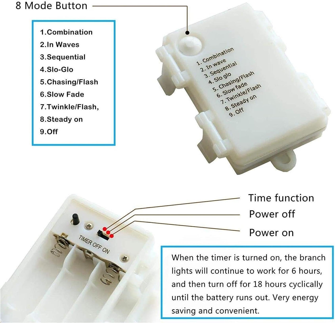 Q: How do the timer and battery function work for these lights?A: These battery-operated lights come with a timer function that allows them to automatically turn on for 6 hours and off for 18 hours. This feature provides convenience, especially during the busy holiday season.