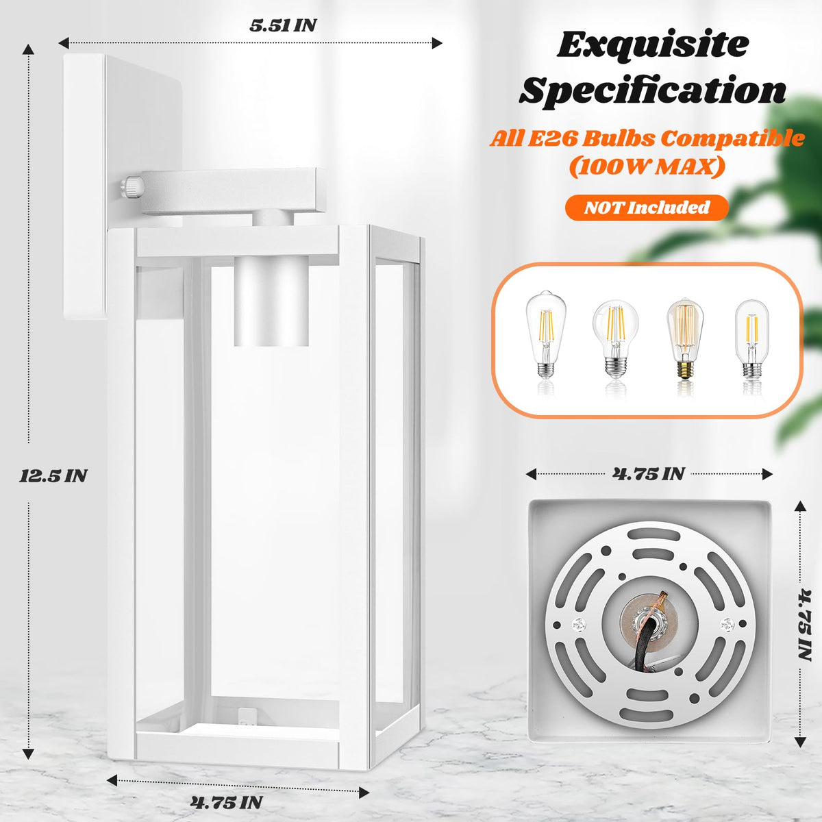 Q: What is the size of the Brightever outdoor wall light fixtures?A: The Brightever outdoor wall light fixtures measure 12.5 inches in height, with a length of 5.12 inches and a width of 4.76 inches. This size makes them suitable for various outdoor spaces like porches, doorways, and garages.