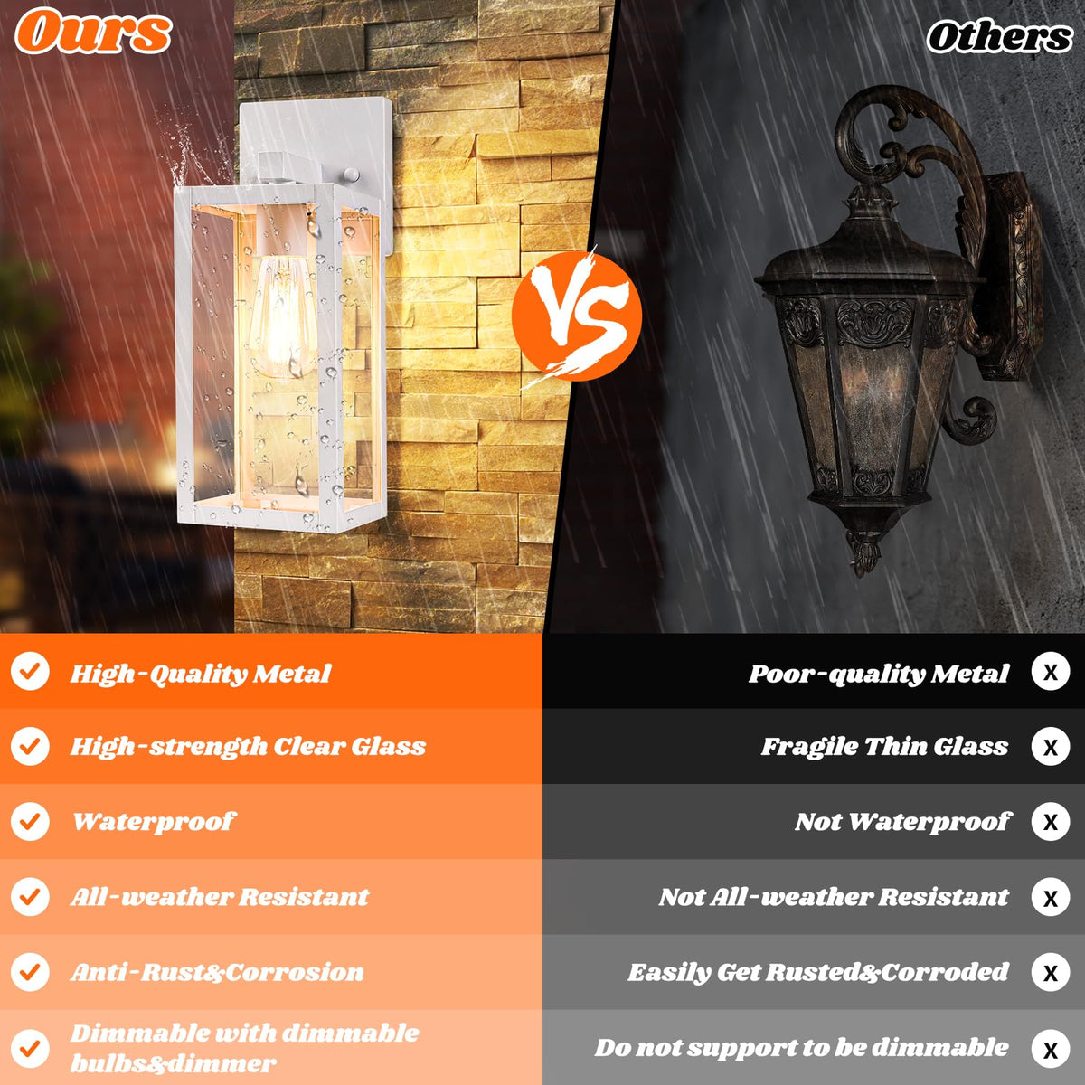 2-Pack Outdoor Wall Light Fixtures , Waterproof Exterior Wall Lanterns With Clear Glass, Anti-Rust Outside Wall Sconces, Front P