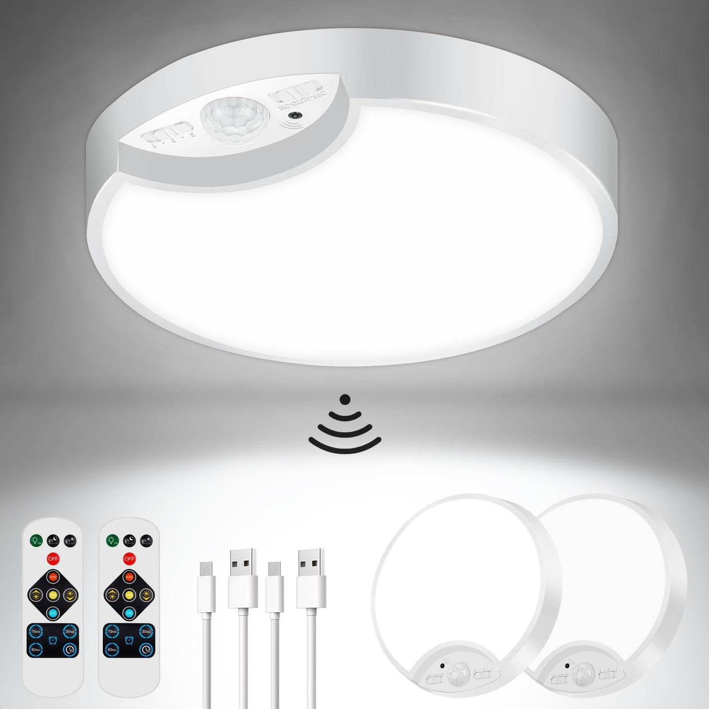 2-Pack Rechargeable Battery Operated Motion Sensor Ceiling Light With Usb Charging Cable, 3500K/4500K/6500K, Wireless Dimmable O