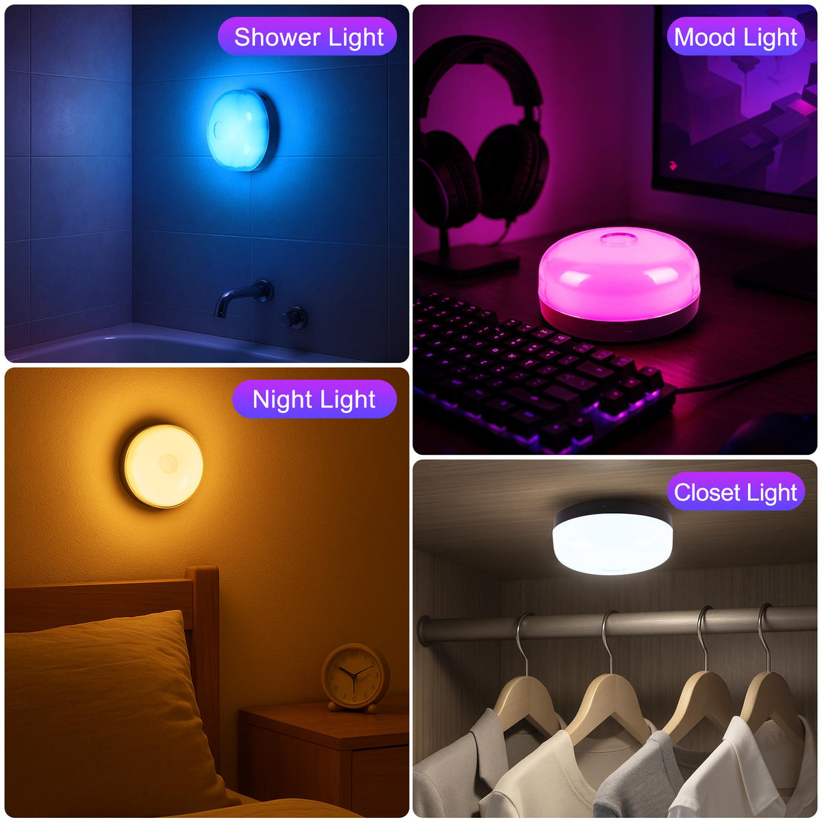 2-Pack Rechargeable Shower Lights For Inside Shower 15 Rgbw Color Changeable Waterproof Lights For Shower With Remote(Dimmable&Timer) Wireless Led Mood Lighting For Bathroom Closet Bedroom Party