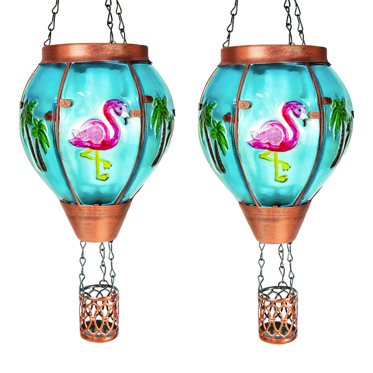2 Pack Solar Hot Air Balloon Lantern With Flame, Flamingo Glass Solar Outdoor Lights For Patio Garden Decor, Gifts For Women Gra