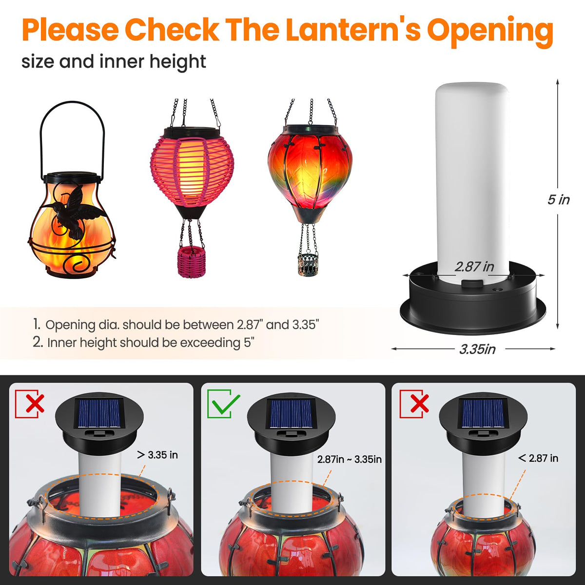 Replacement Solar Light Parts: The Suggant solar light replacement top is compatible with most outdoor lanterns in the market. It fits lantern openings ranging from 2.87 inches to 3.35 inches, ensuring a proper fit for your solar lights.