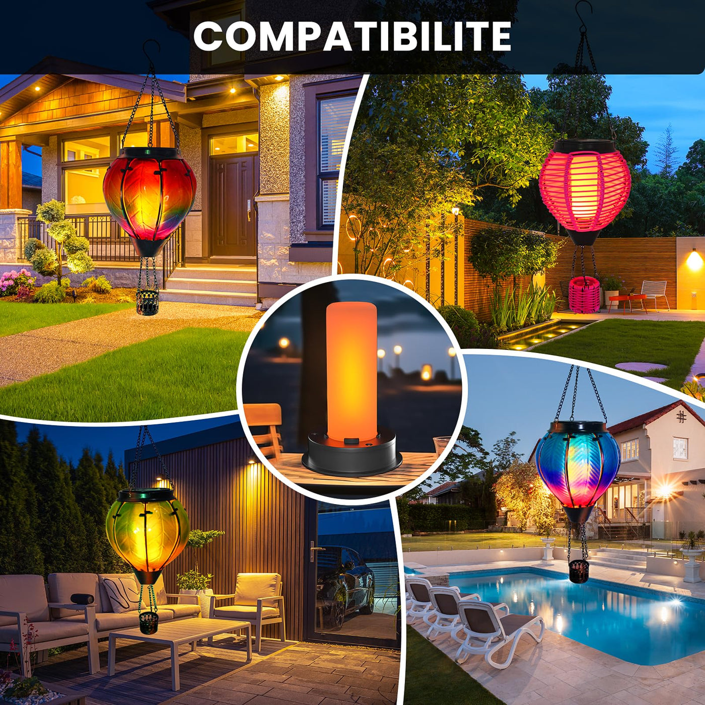 Flickering Flame Design: This replacement top mimics the appearance of real flames, adding a touch of charm and elegance to your hot air balloon solar lanterns. The warm yellow light creates a beautiful ambiance, ideal for outdoor relaxation.