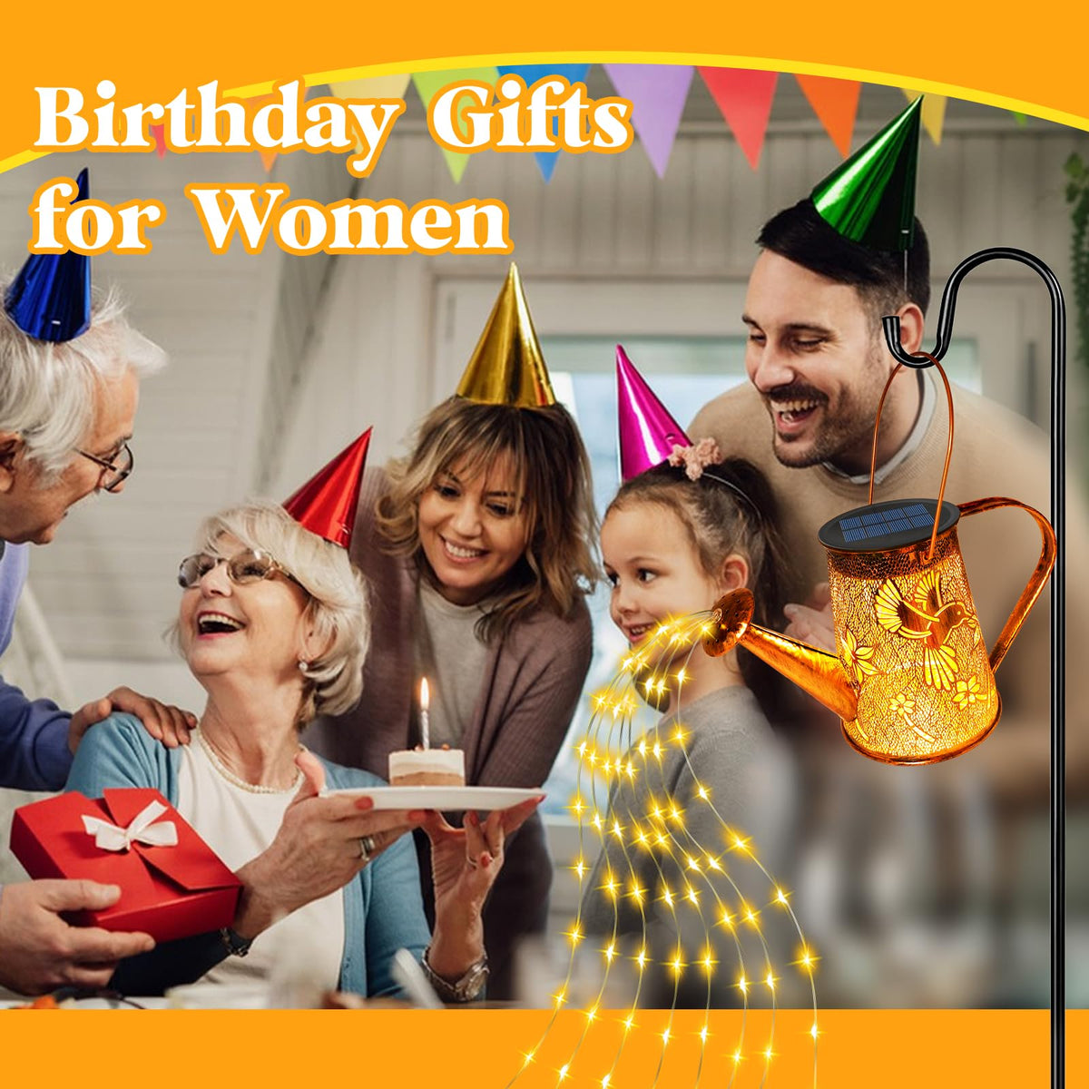 2 Pack Solar Watering Can Lights, Hummingbird Gifts For Women Mom Grandma Birthday, Waterproof Outdoor Garden Decor Large Hangin