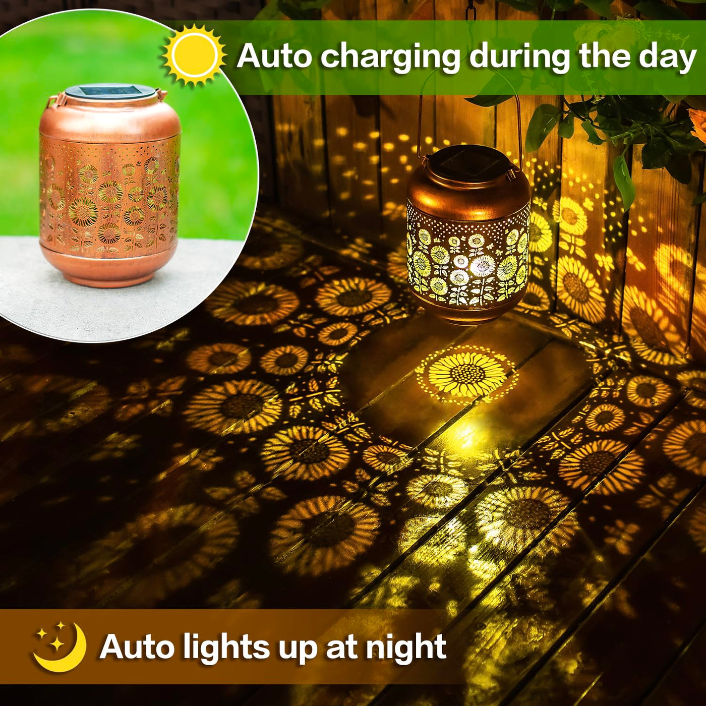 2 Pack Sunflower Solar Lanterns Outdoor Waterproof Hanging Solar Lights Sunflower Gifts For Women Men Mom Metal Decorative Led Outdoor Lanterns For Patio,Lawn,Landscape, Garden Decor, Yard Decoration