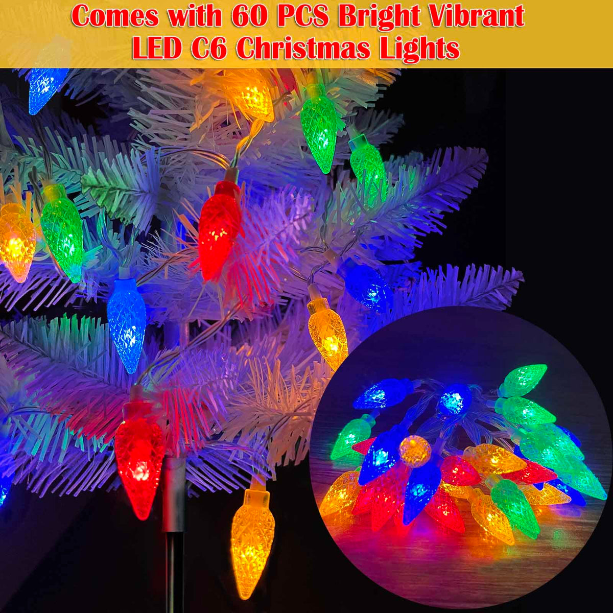 Q: What kind of lighting options are available with these Christmas trees?A: The Christmas trees come with 60 LED C6 lights featuring 8 different lighting options, allowing you to customize the ambiance for various occasions.