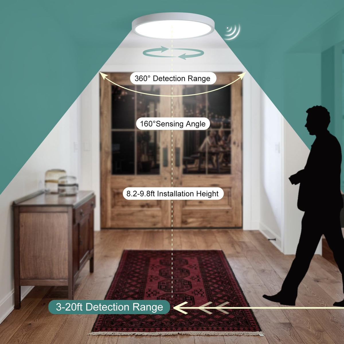 2 Pack Zsyubo 12 Inch Motion Sensor Ceiling Light Wired,24W Flush Mount Light Fixture Round, Motion Sensor Light Indoor For Clos