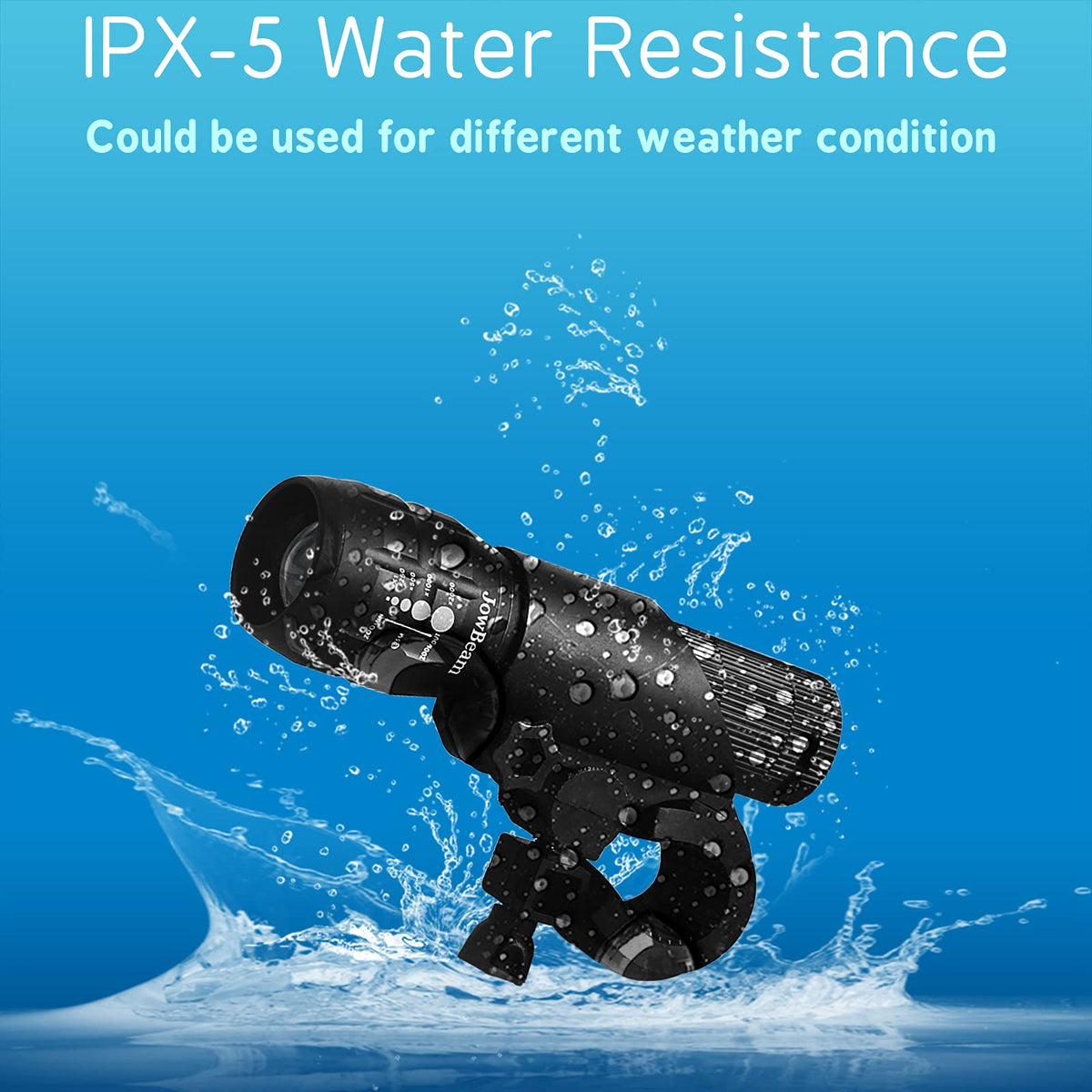 Q: Is the bike light set weather-resistant?A: Yes, both the front headlight and rear tail light are IPX4 water-resistant, making them suitable for use in rainy conditions and on dark roads or trails.