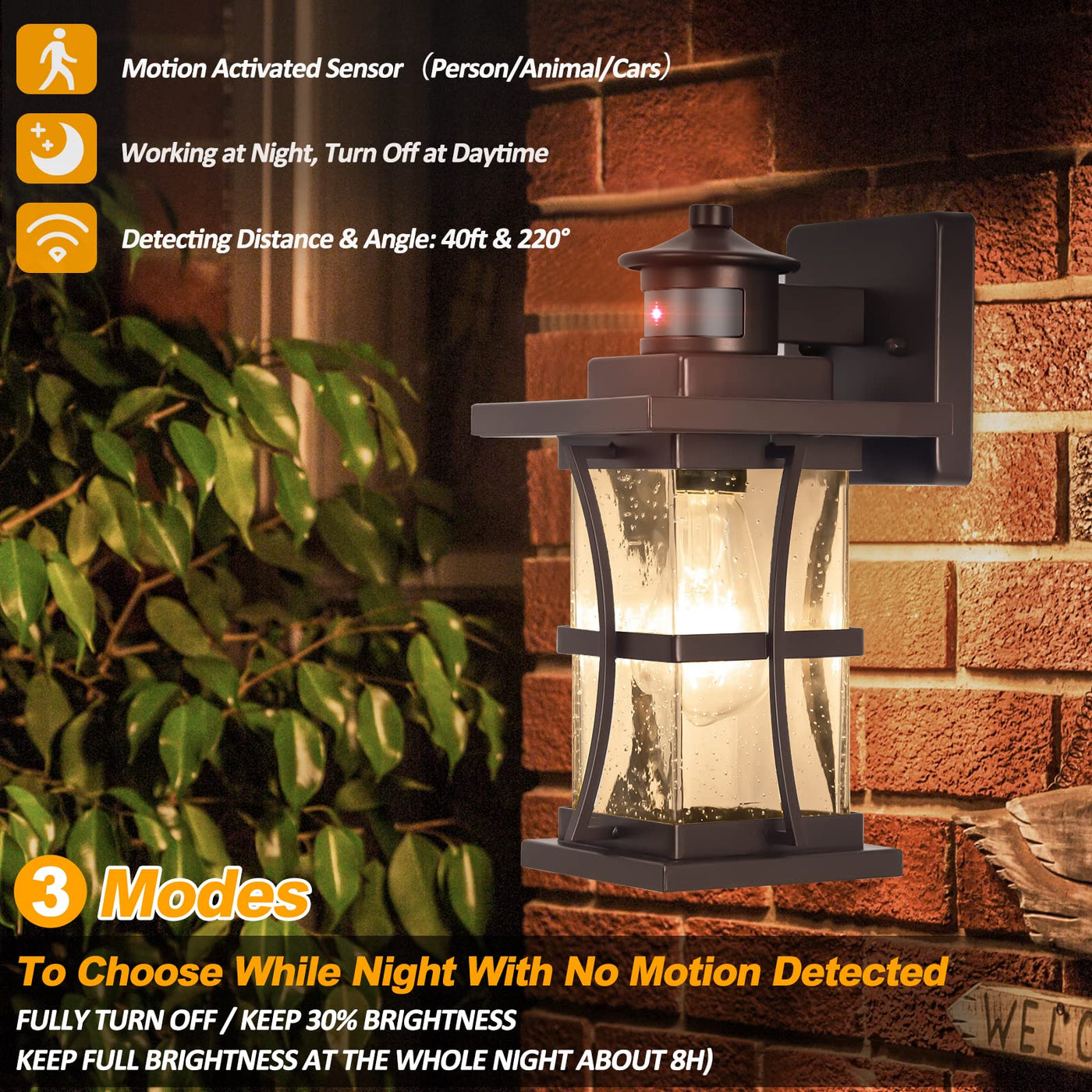 2 Packs Motion Sensor Outdoor Lights - Dusk To Dawn Outdoor Lighting, Oil Rubbed Bronze Porch Lights Outdoor Wall Sconce, Waterproof Exterior Light Fixtures For House, Garage, Entryway Anti-Rust, E26
