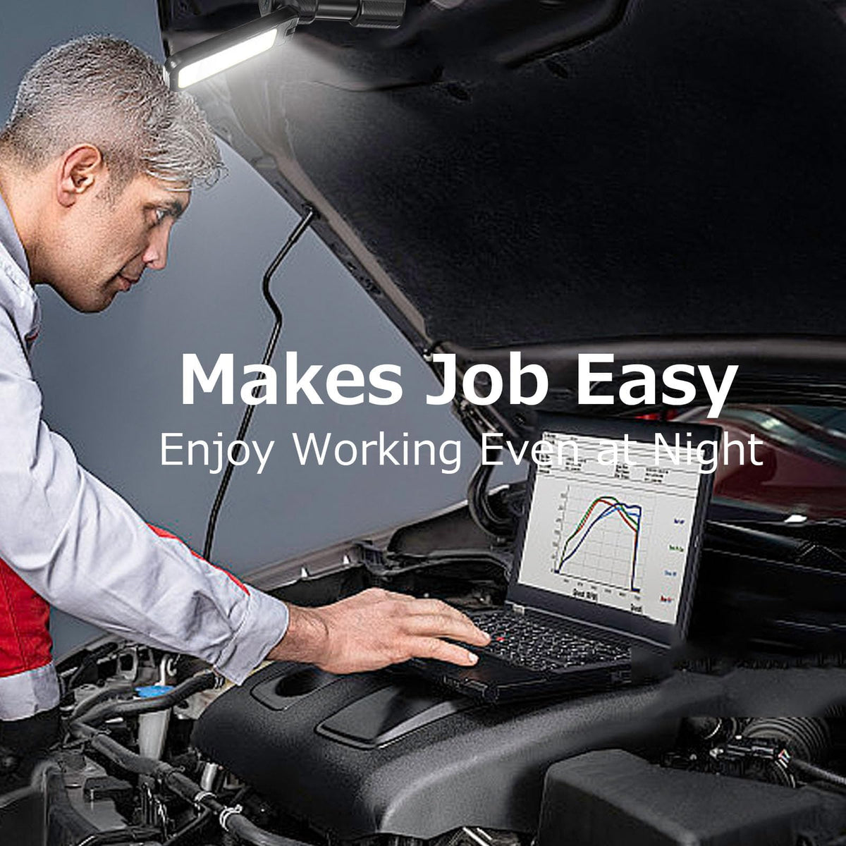 Illuminate your workspace with this powerful 1500 lumens LED work light that combines versatility with convenience. The magnetic feature allows hands-free operation by securely attaching to metal surfaces, making it perfect for car repairs and mechanical work. This durable flashlight features modern USB-C charging capability, ensuring youre never left in the dark. Its waterproof construction makes it reliable in various weather conditions, while the portable design is ideal for multiple uses - from emergency situations to outdoor adventures. Whether youre camping under the stars, fixing your vehicle, or need reliable lighting during power outages, this versatile work light delivers bright, consistent illumination when you need it most. The high-brightness LED technology provides clear, focused light that helps you see details with precision, making it an essential addition to your mechanics tools and outdoor gear collection.