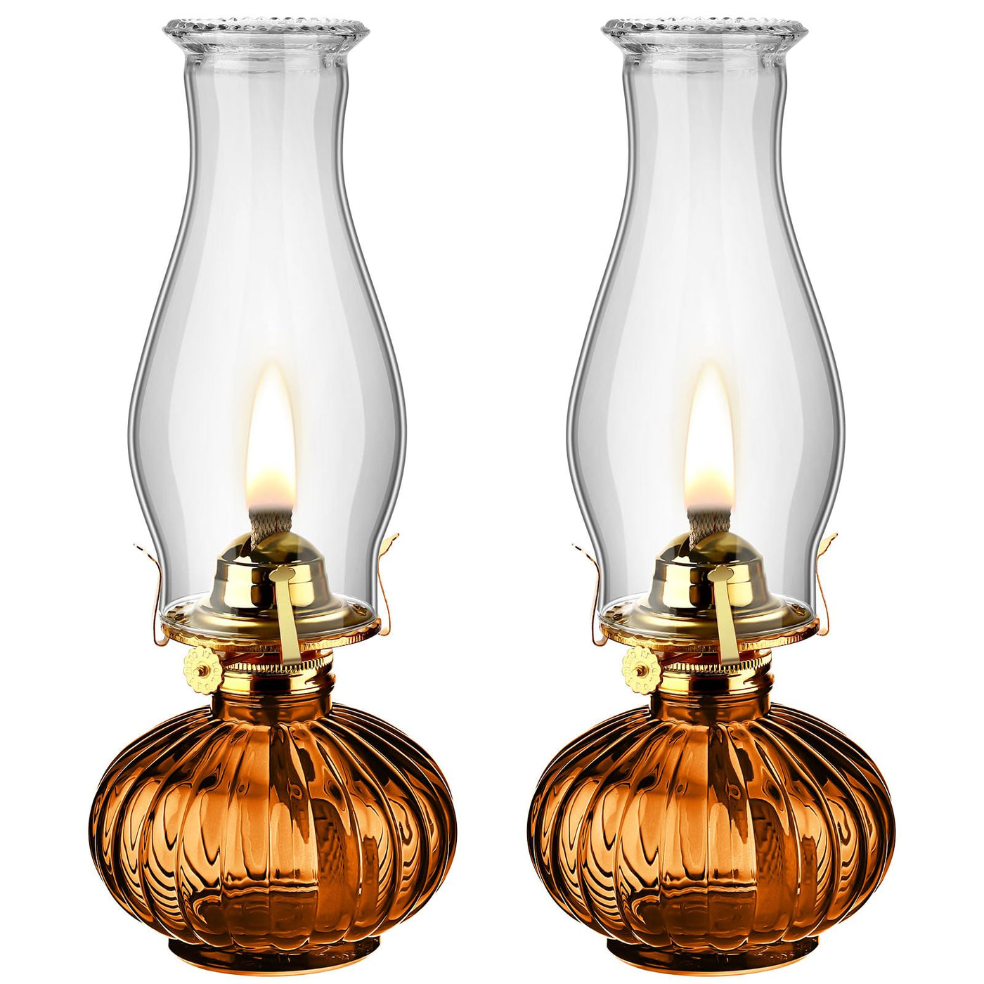 2 Set Chamber Oil Lamp Classic Kerosene Lamp Large Oil Glass Lantern Vintage Hurricane Lamp With Adjustable Fire Wick For Home Indoor Use Chimney Burner, 13 Inch Heigh(Brown)