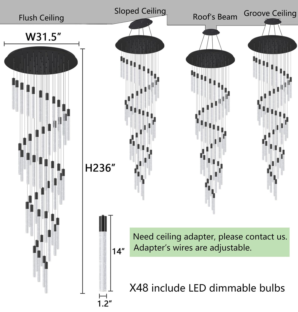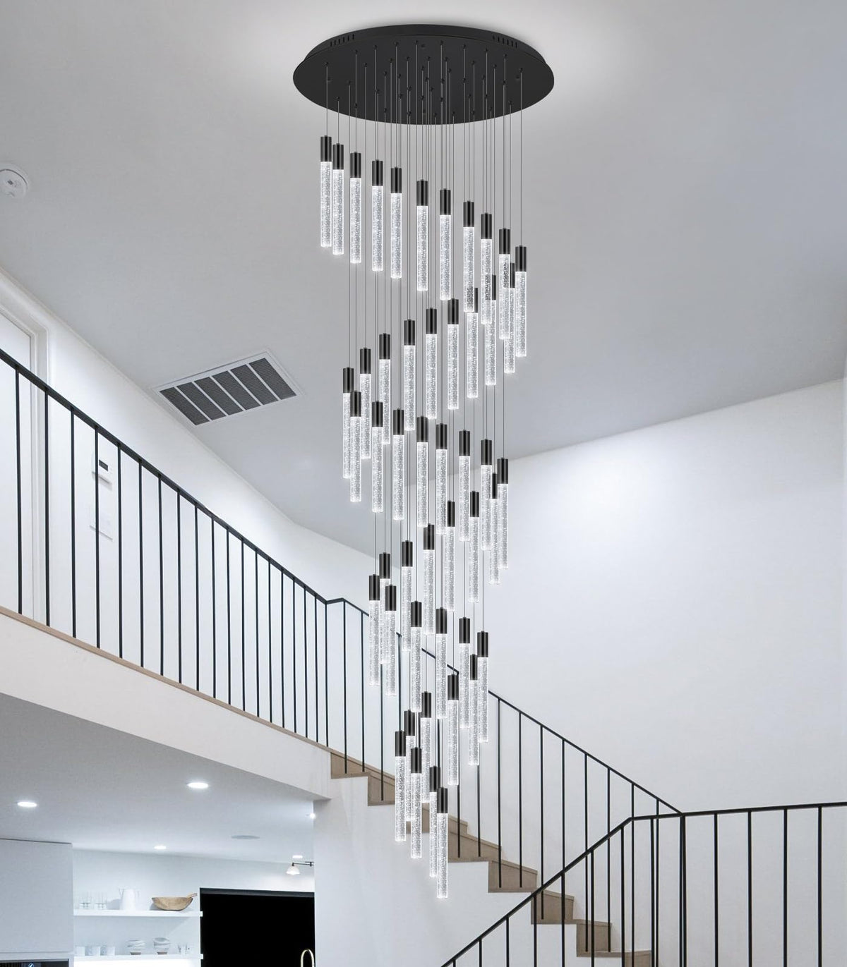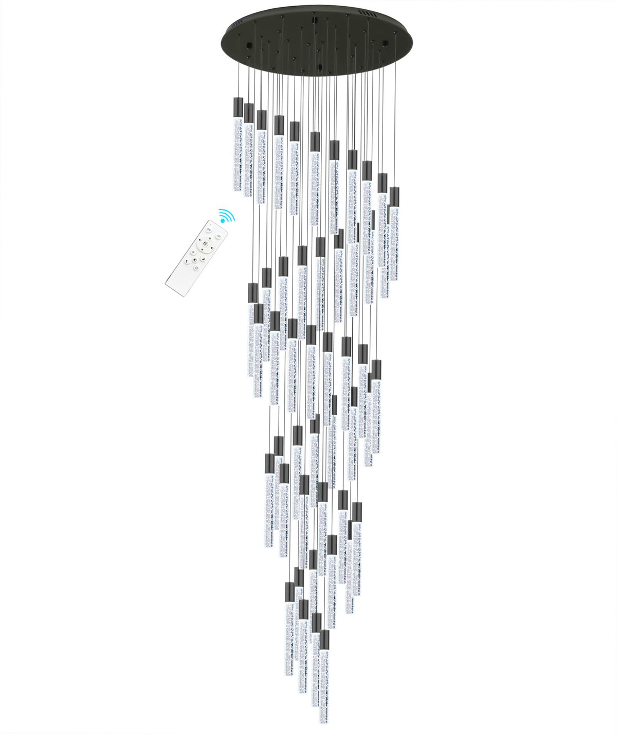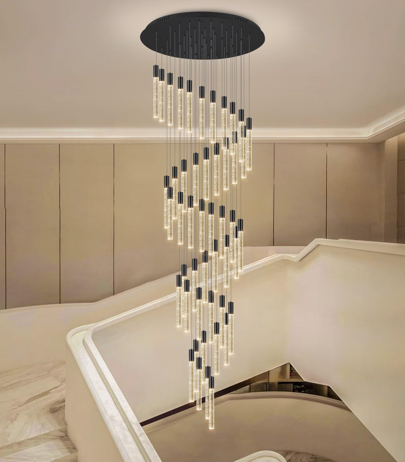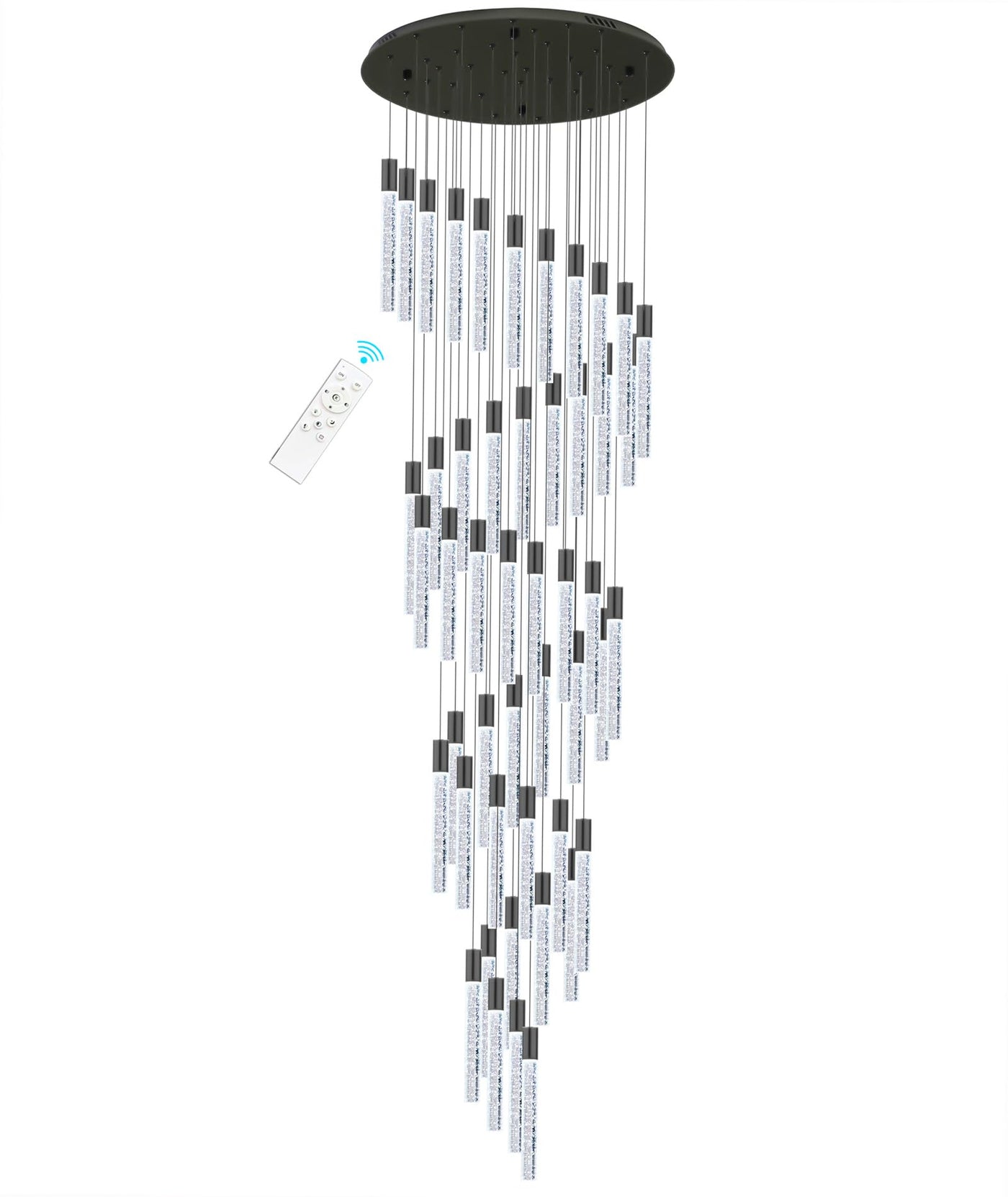 20 foot 48-lights Chandeliers for Living Room Entryway High Ceiling Light Chandelier LED Crystal Pendants Light Sloped Ceiling Chandeliers Staircase Lighting Fixture LED Dimmable Lighting Black