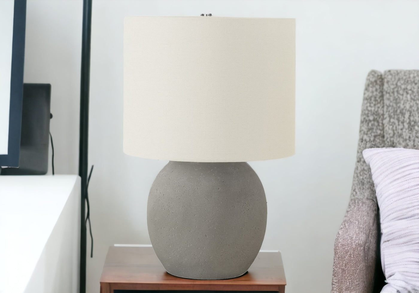 20'' Gray Concrete Round Table Lamp With Ivory Drum Shade