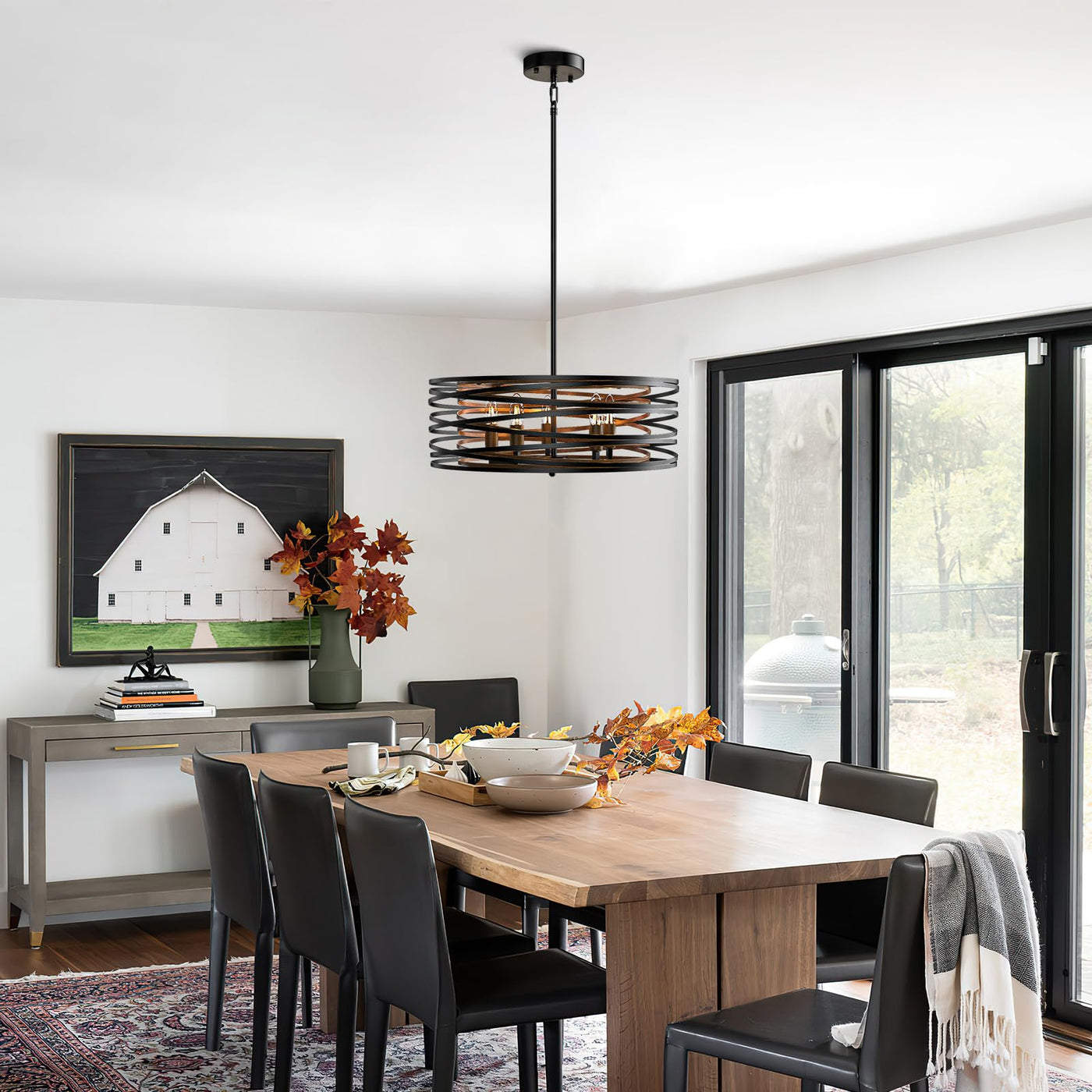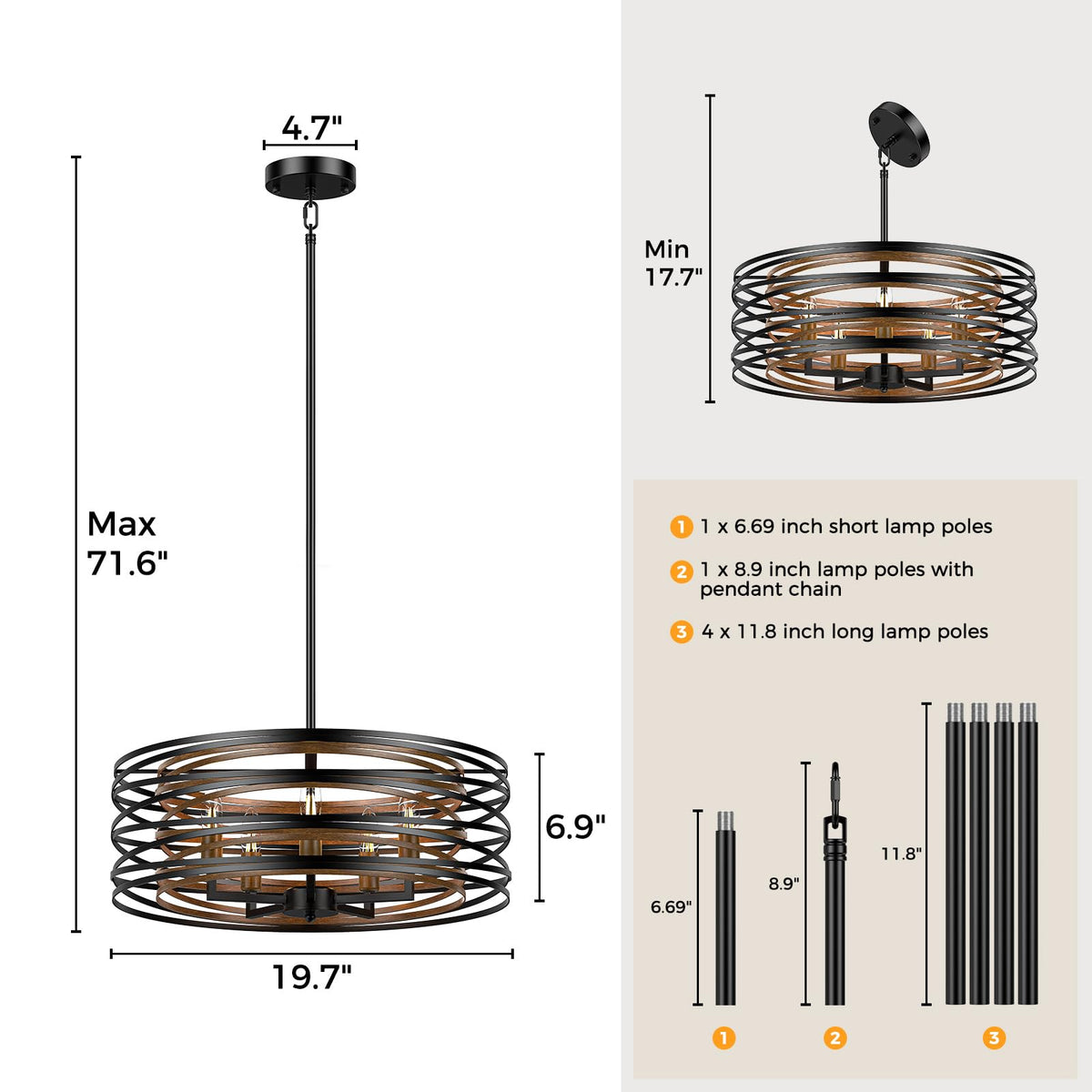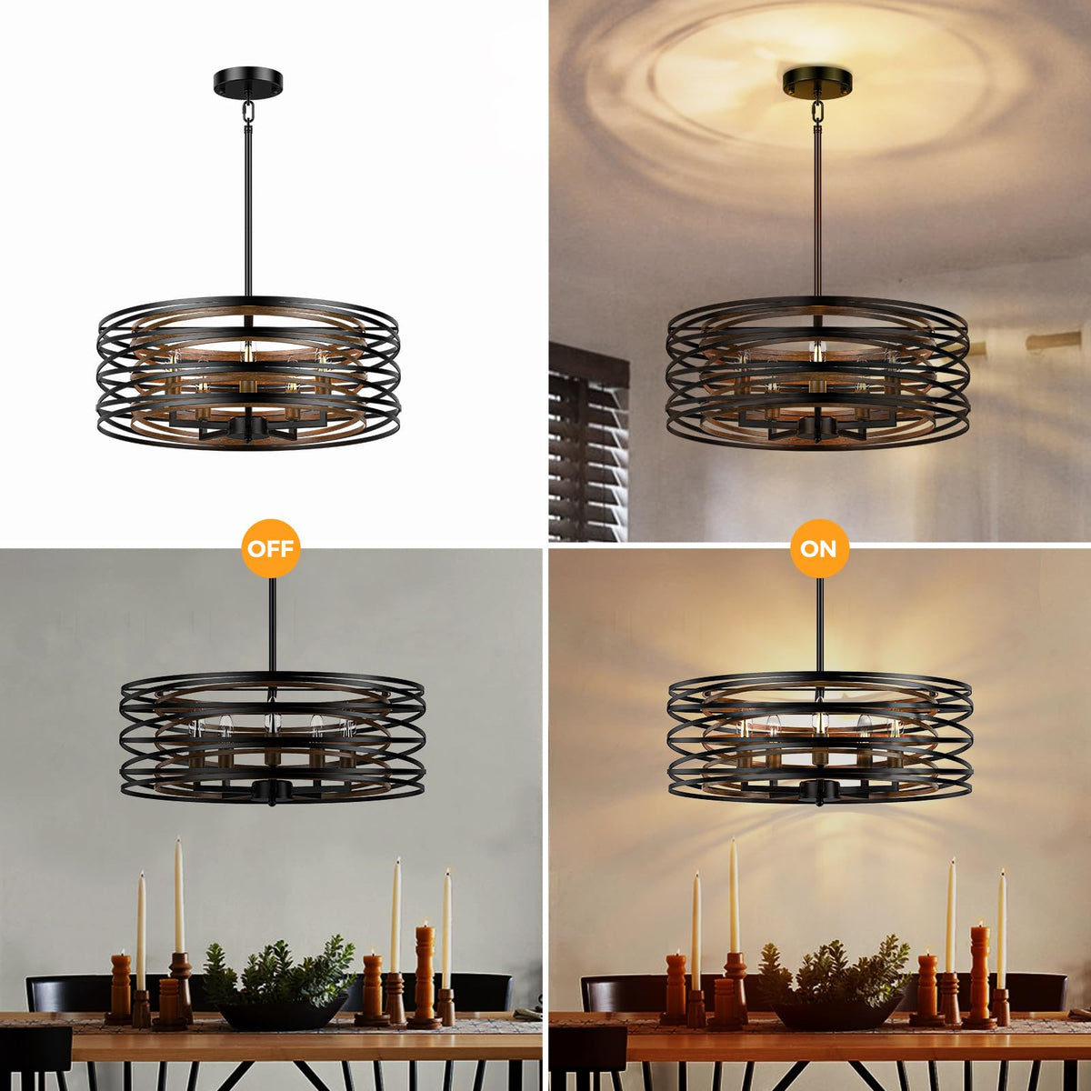 20 Inch Black Chandelier, 5-Light Farmhouse Chandelier For Dining Room Lighting Fixtures Hanging, Dining Light Fixtures Industri