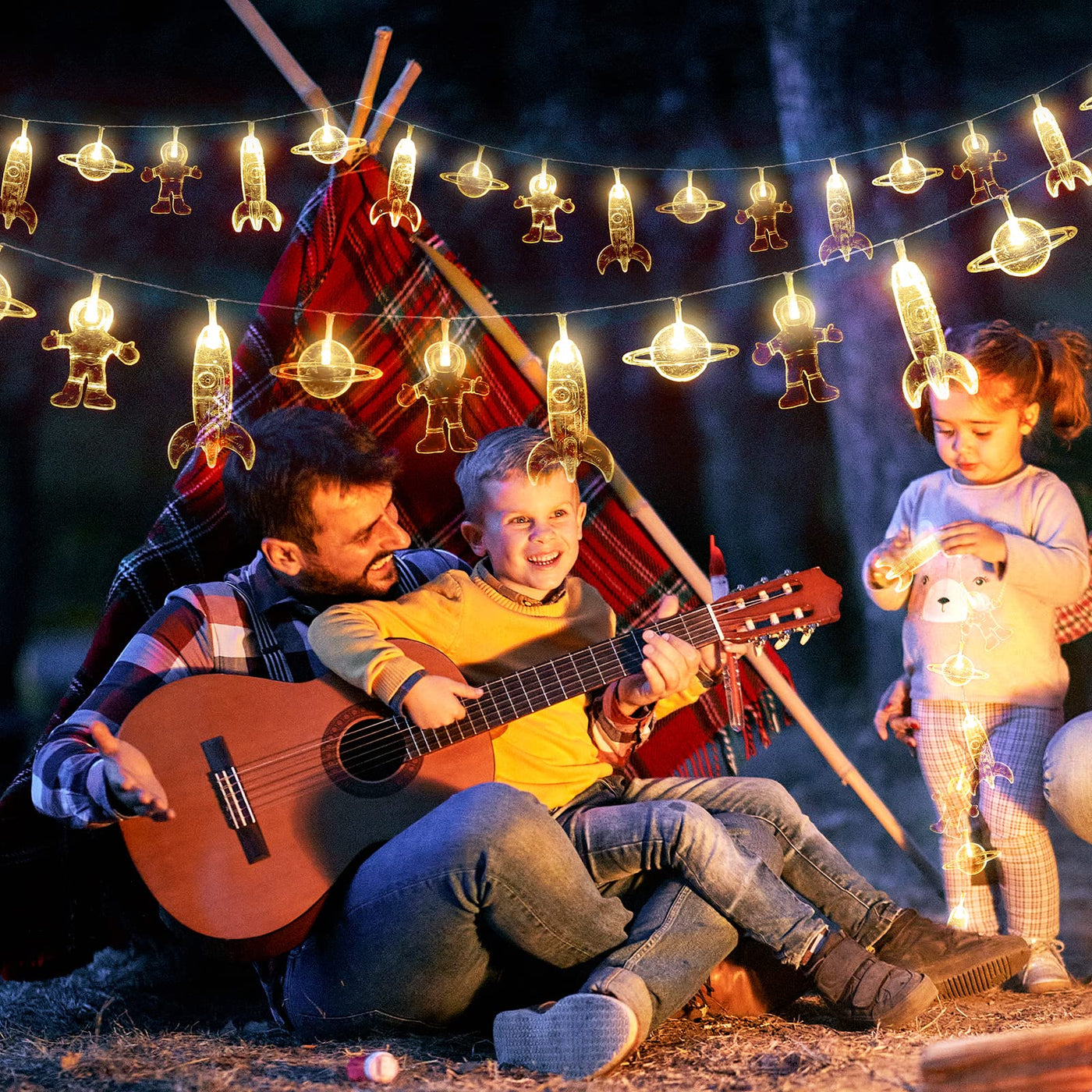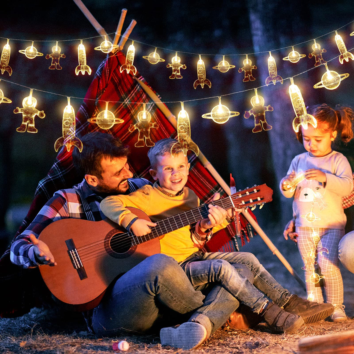 20 Led Children'S Room Led String Light Astronaut Spaceship Rocket Pendants Holiday Party Lights Wall Window Nursery Or Kids Room Decor Wedding Around The Garden Party Patio Christmas (Warm White)