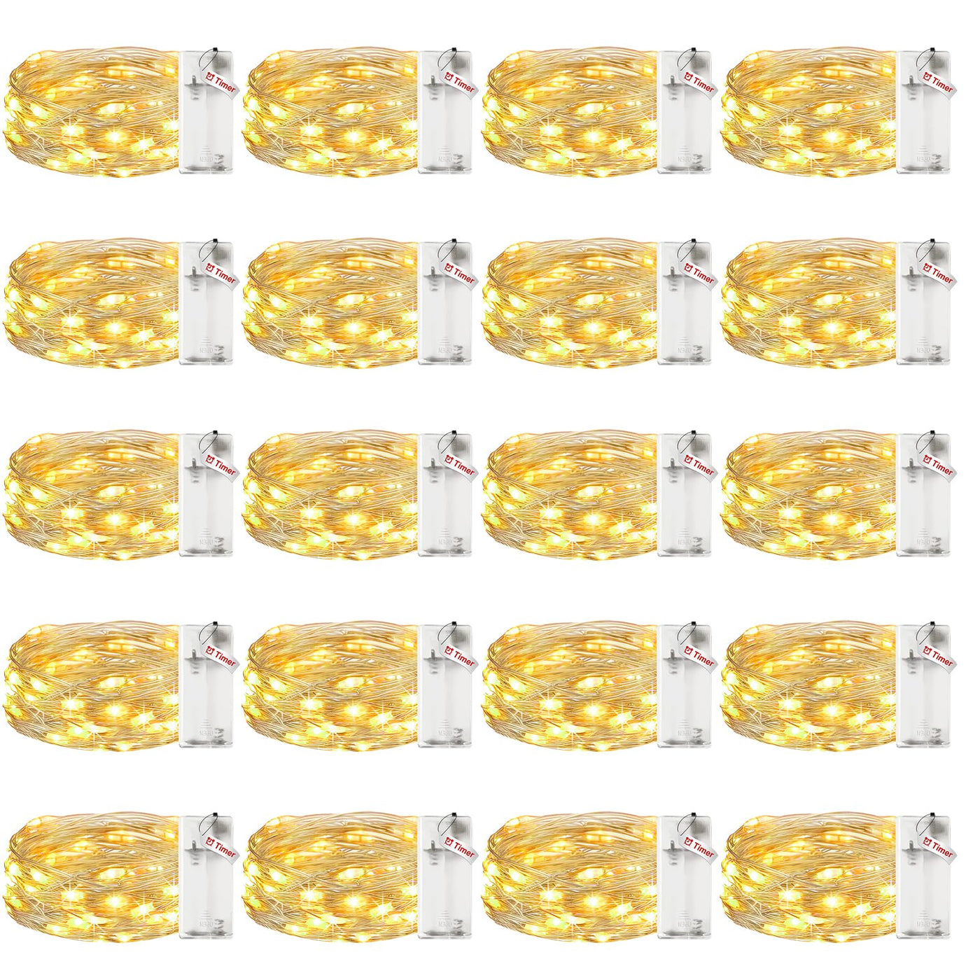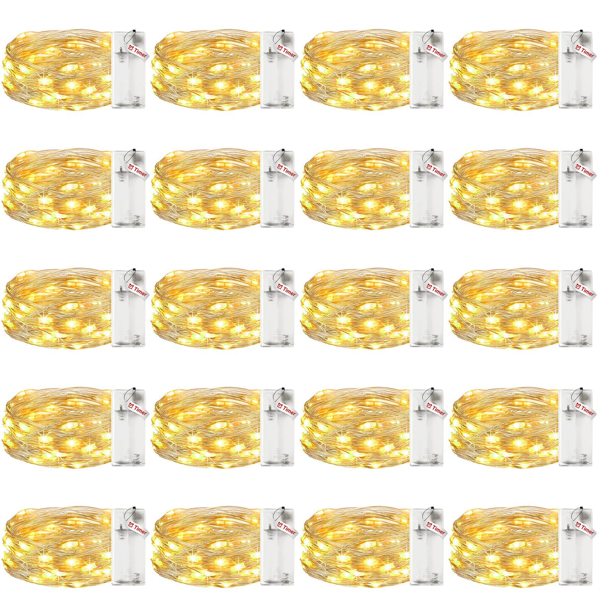?20 Pack?Fairy Lights Battery Operated With Timer, 7Ft 20Led String Lights Waterproof Silver Wire Fairy Light Battery Powered Twinkle Lights For Bedroom Christmas Wedding Indoor Party Decor Warm White